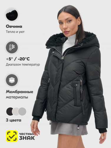 Куртка зимняя женская из овчина стильная и модная черного цвета 7348Ch