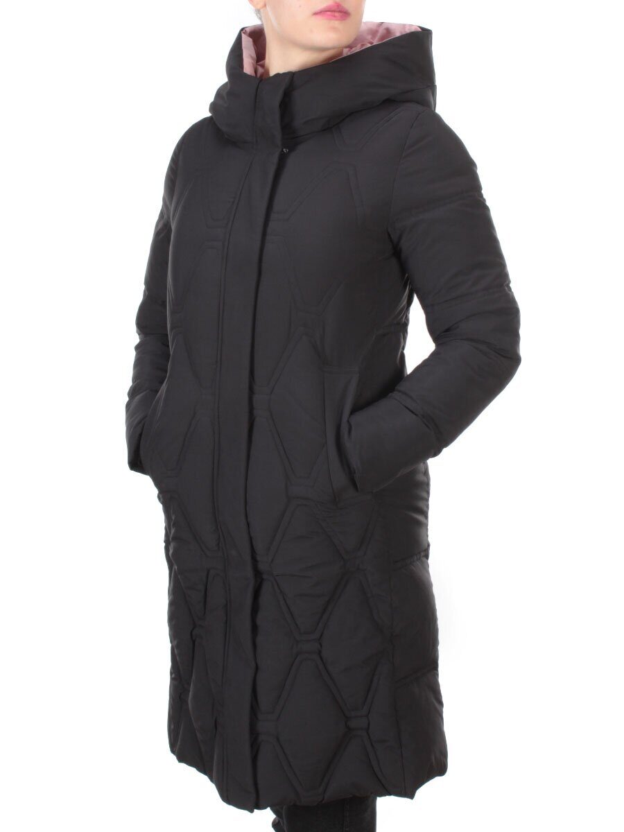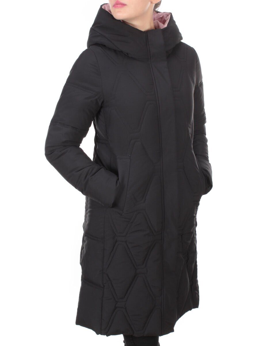 2158 BLACK Пальто зимнее облегченное женское YINGPENG (150 гр. холлофайбер)