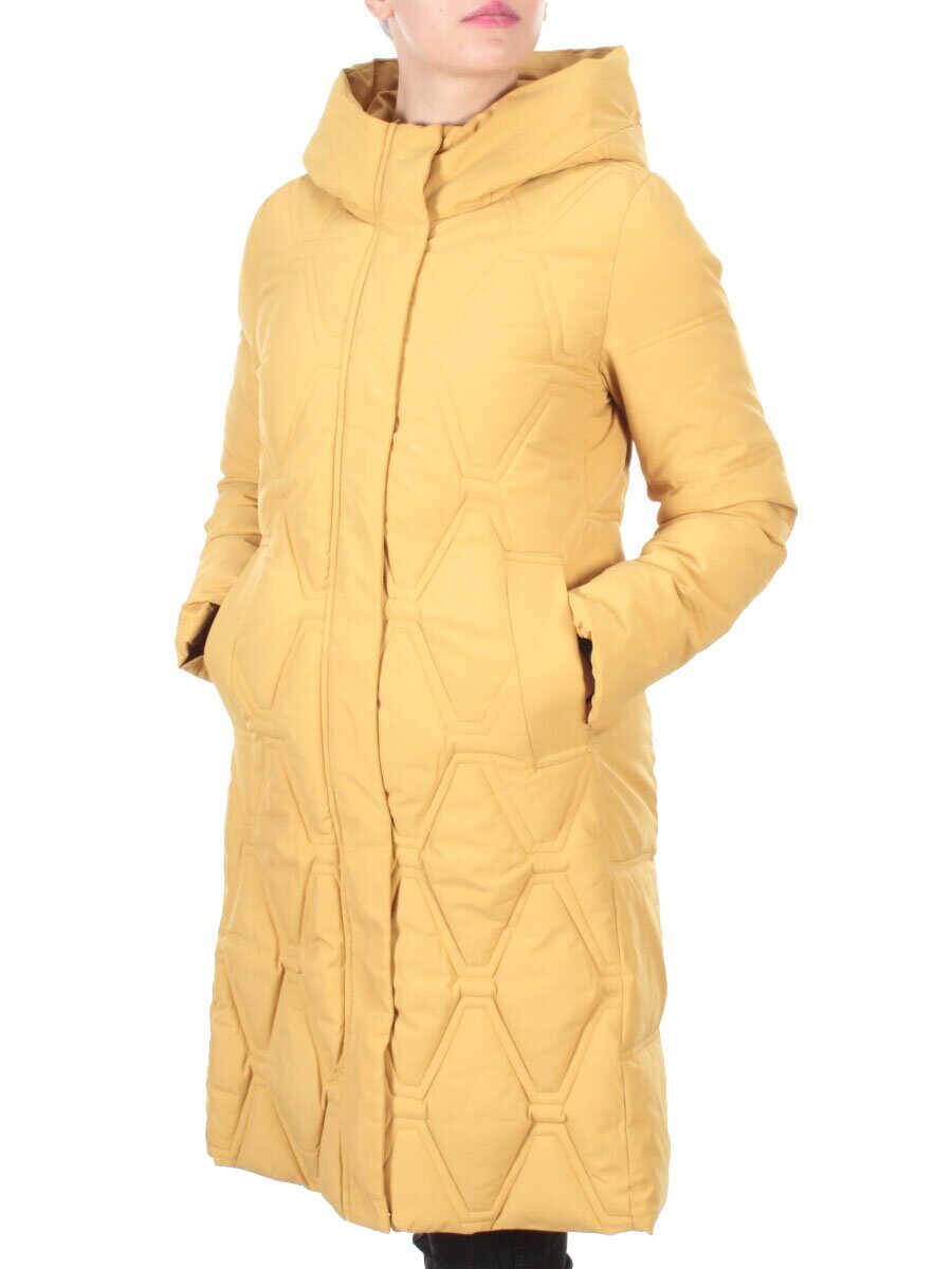 2158 MUSTARD Пальто зимнее облегченное женское YINGPENG (150 гр. холлофайбер)