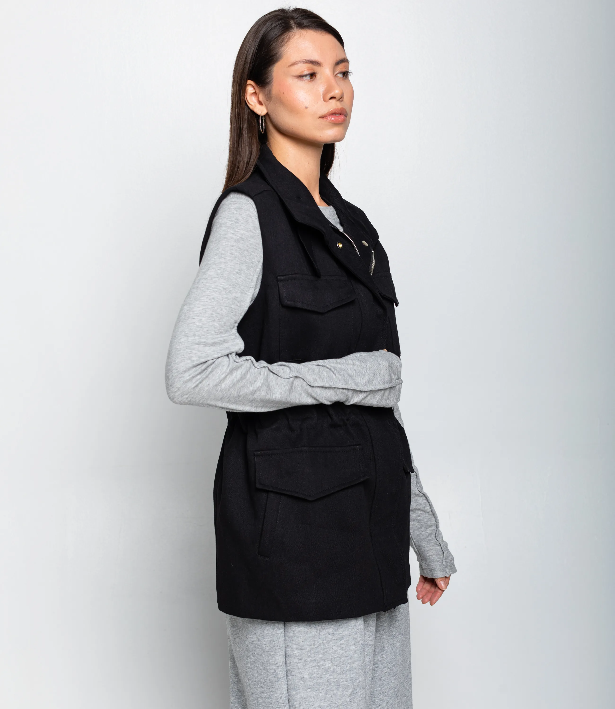 Жилет – это одежда, которая подчеркивает уникальность каждой представительницы прекрасного пола. Жилет прямого силуэта средней длины, с двубортной планкой и центральной застежкой на молнию, дополненной скрытой кнопочной утяжкой в верхней части, с отложным воротником, переходящим в широкие полочки, плечи слегка расширенные для структурированного объема, без рукавов с аккуратно обработанными проймами, поясные и нагрудные накладные карманы с клапанами — по два на каждой стороне разного размера для функциональности, швы декоративно подчернены строчкой, талия оформлена кулиской с регулируемым затягиванием для формирования силуэта, низ прямой, обработан усиленной подгибкой. Для пошива выбрана ткань 90% хлопок и 10% полиэстер, которая характеризуется безупречным качеством. Даже после множества стирок изделие не утратит первоначальной индивидуальности. Вы сможете носить его с большим удовольствием. Обратите внимание на цвет. Он является насыщенным и полностью соответствует фотографии на сайте. Чтобы вы были уверены в размере, мы представили на странице таблицу. Воспользовавшись ею, вы сами сможете сделать мерки и удостовериться. Установленная нами цена является адекватной. Не откажите себе в удовольствии быть элегантной! Рост модели 164 см., 83-61-89.