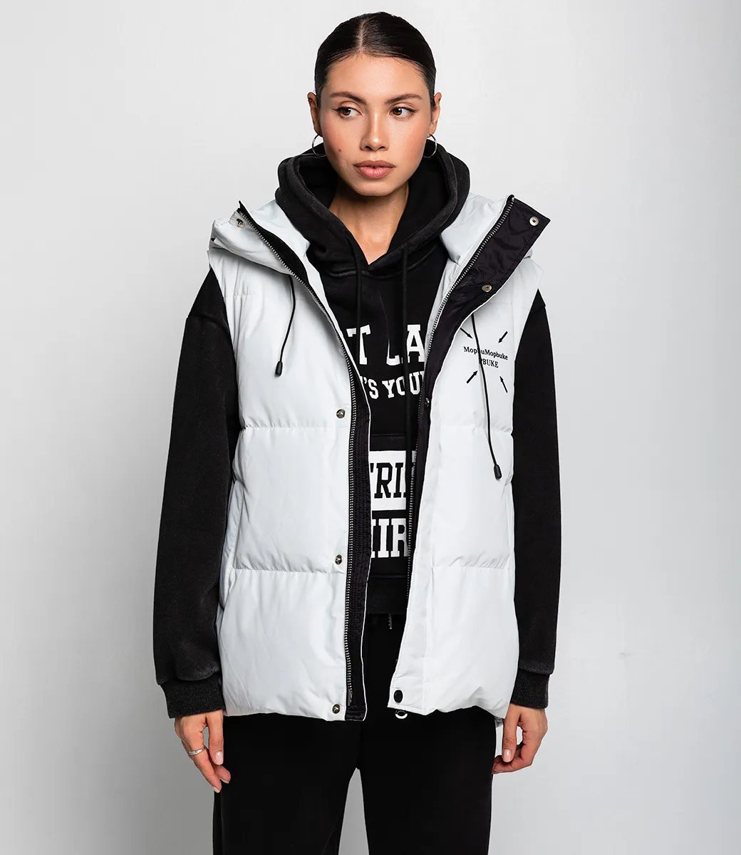Жилет — это универсальный элемент гардероба, который идеально подходит для осеннего сезона. Эта модель представляет собой идеальное сочетание стиля и удобства, позволяя вашим клиентам чувствовать себя комфортно и стильно в прохладную погоду. Изготовленный из 100% полиэстера, жилет оснащен утеплителем холлофайбер, который обеспечивает отличную теплоизоляцию и легкость. Воротник стойка и капюшон добавляют дополнительную защиту от осеннего ветра, создавая ощущение уюта и комфорта. Такой жилет станет незаменимым спутником в повседневной жизни и на активном отдыхе. Яркий принт цифр на спине придает модели оригинальность и индивидуальность, позволяя каждому покупателю выразить свою оригинальность. Жилет легко комбинируется как с верхней, так и с повседневной одеждой, добавляя интересные акценты в любой образ.Предложенная цена делает эту модель особенно привлекательной для оптовых клиентов, предоставляя возможность выгодно дополнить ассортимент. На странице предоставлена таблица с размерами, что позволяет вашим покупателям легко и быстро подобрать идеальный вариант. Рост модели 164, 83-61-89.