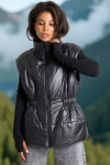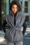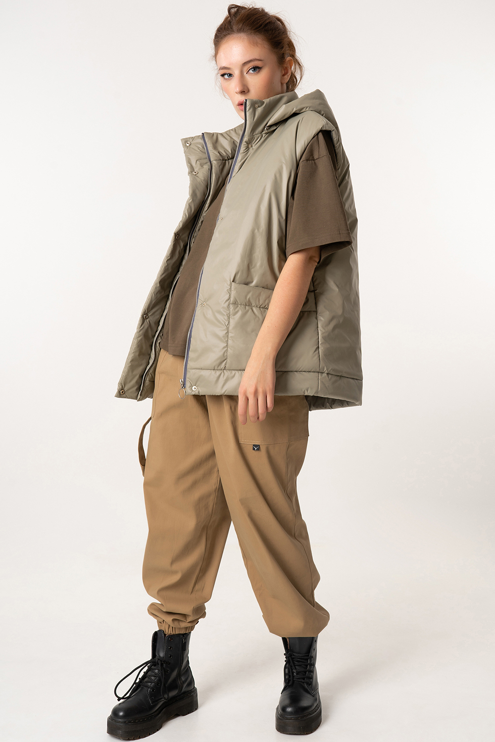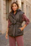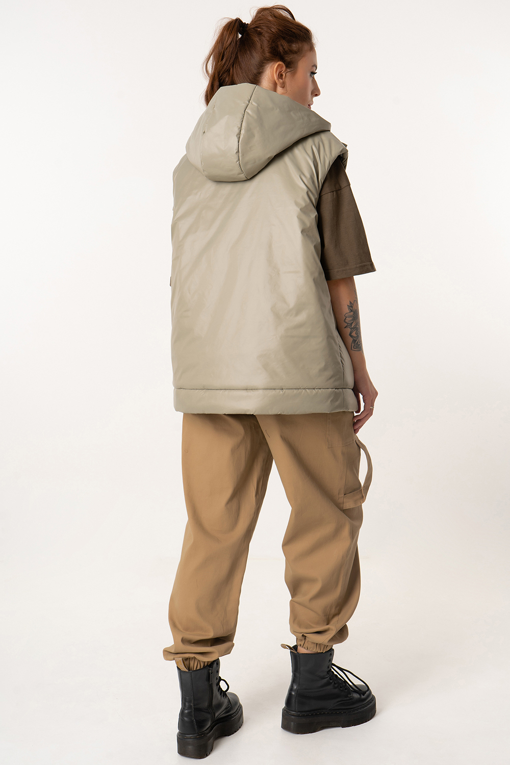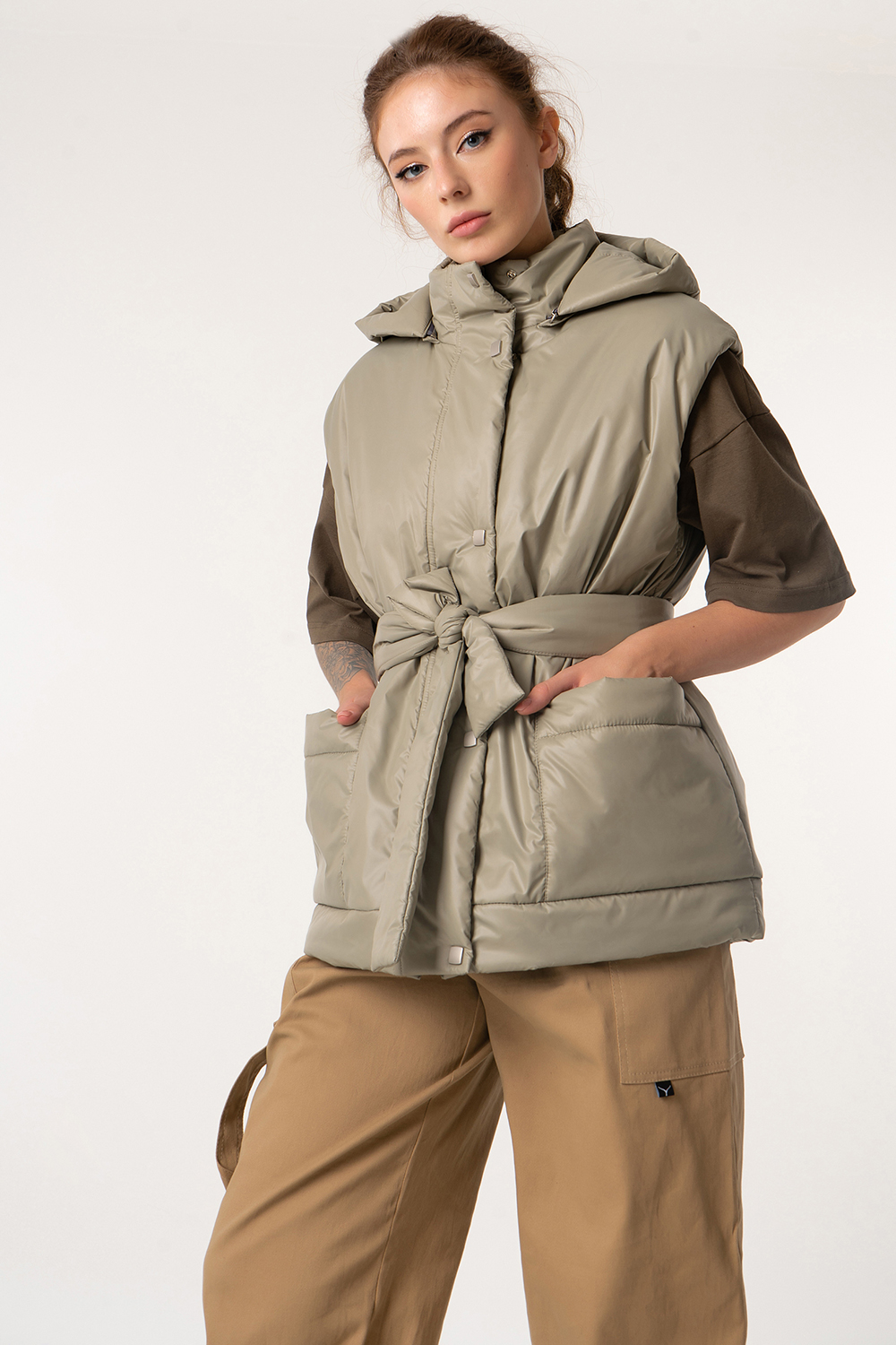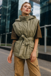• Особенности: Утепленный жилет прямого силуэта из курточной ткани. Детали: воротник-стойка, съемный капюшон, спущенное плечо, накладные карманы с широкой настрочкой по верхнему краю, притачная планка по низу, застежка на молнию, притачная планка по переду с застежкой на кнопки, съемный пояс в комплекте.