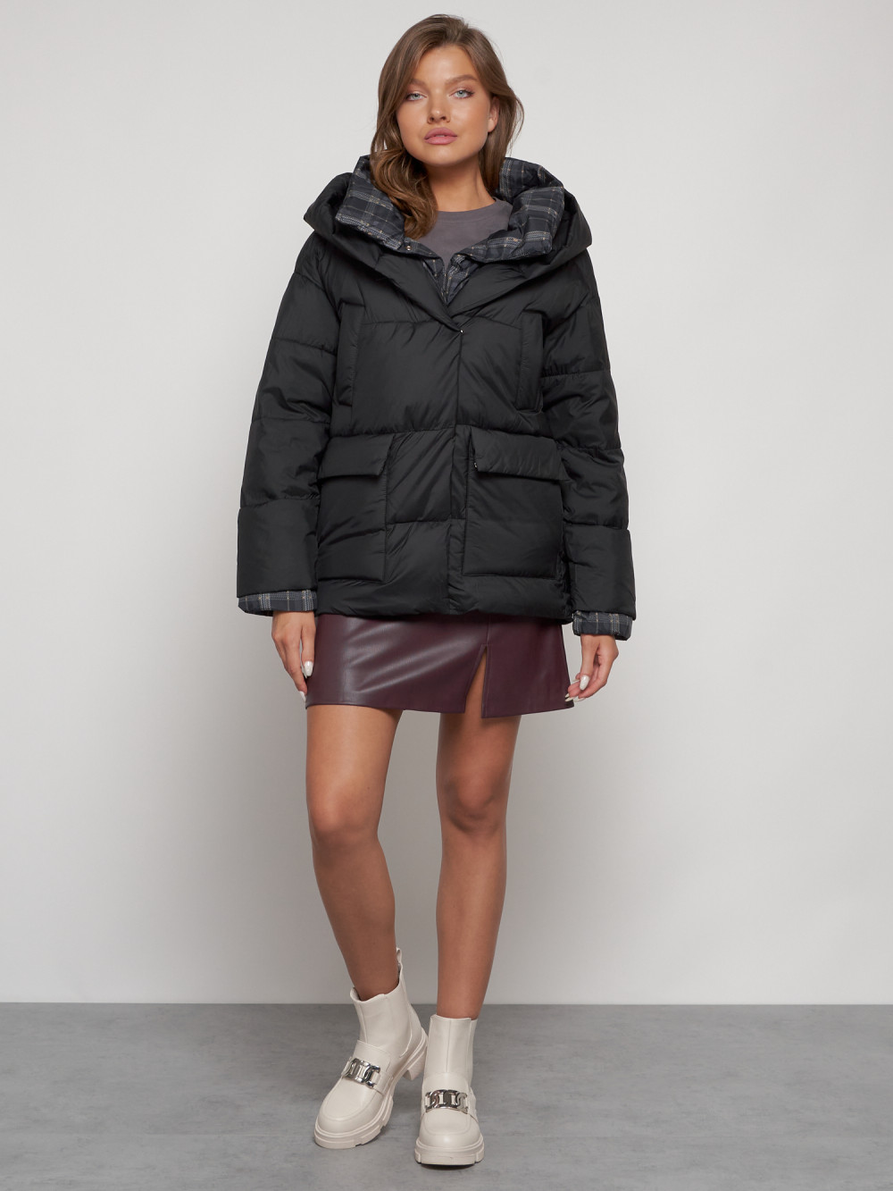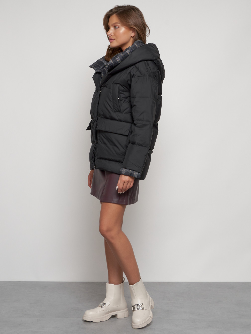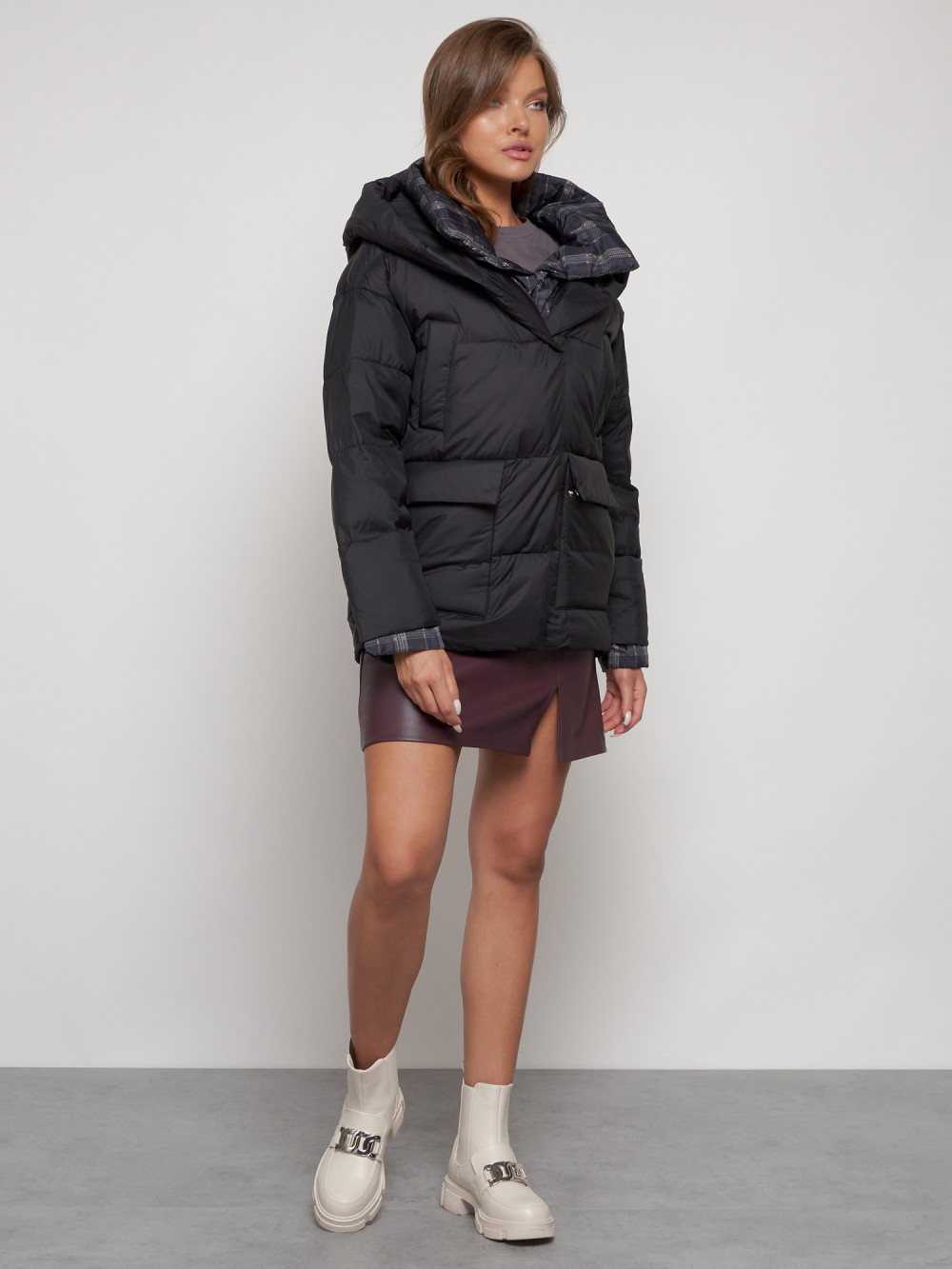 Зимняя женская куртка модная с капюшоном черного цвета 133105Ch