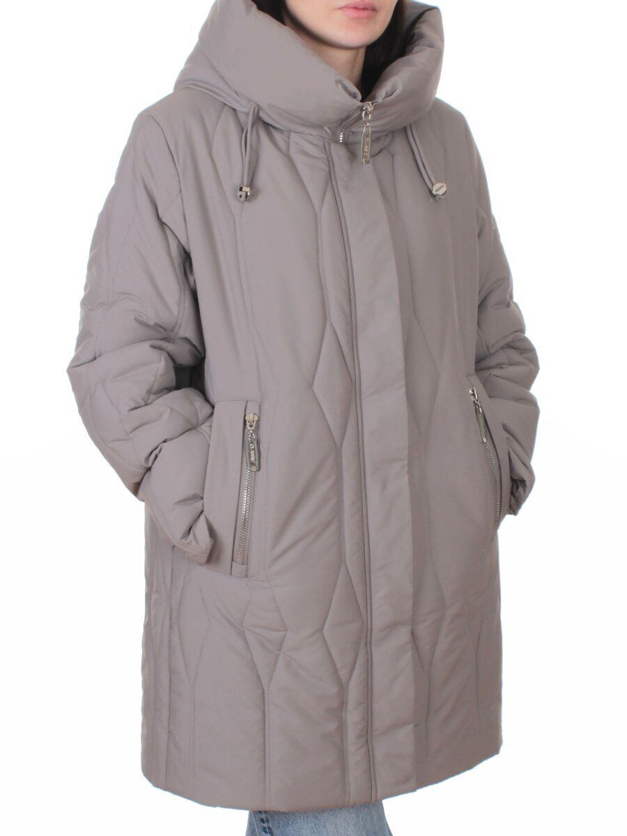 A-822 GRAY/BEIGE Куртка зимняя стеганная женская (верблюжья шерсть, 120 гр. холлофайбер)