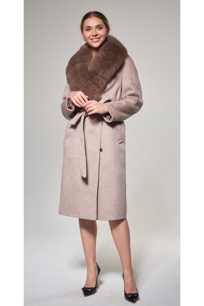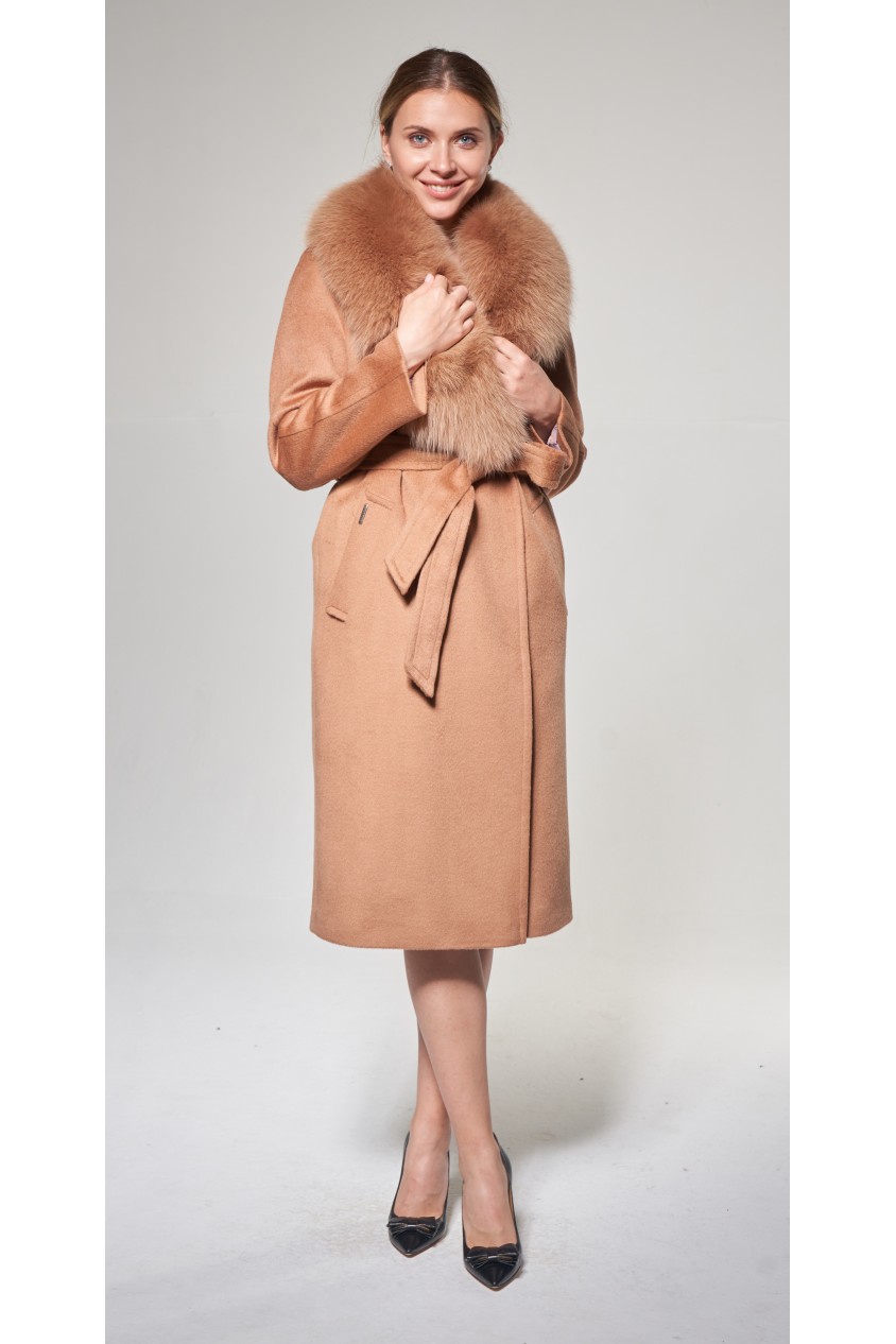 НА 4 ФОТО д-2803 Пальто зима+(песец) Лама кемел