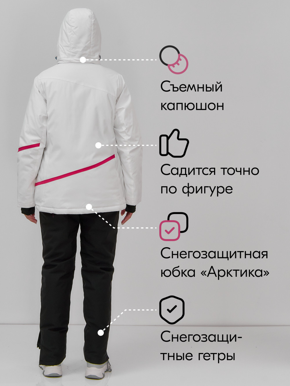 Горнолыжный костюм женский зимний белого цвета 07091Bl