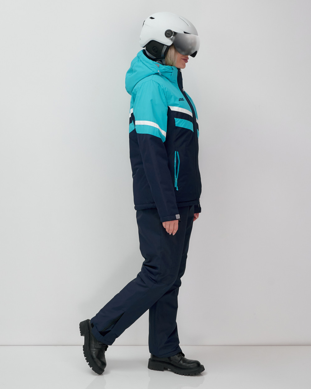 Горнолыжный костюм женский зимний бирюзового цвета 02808Br