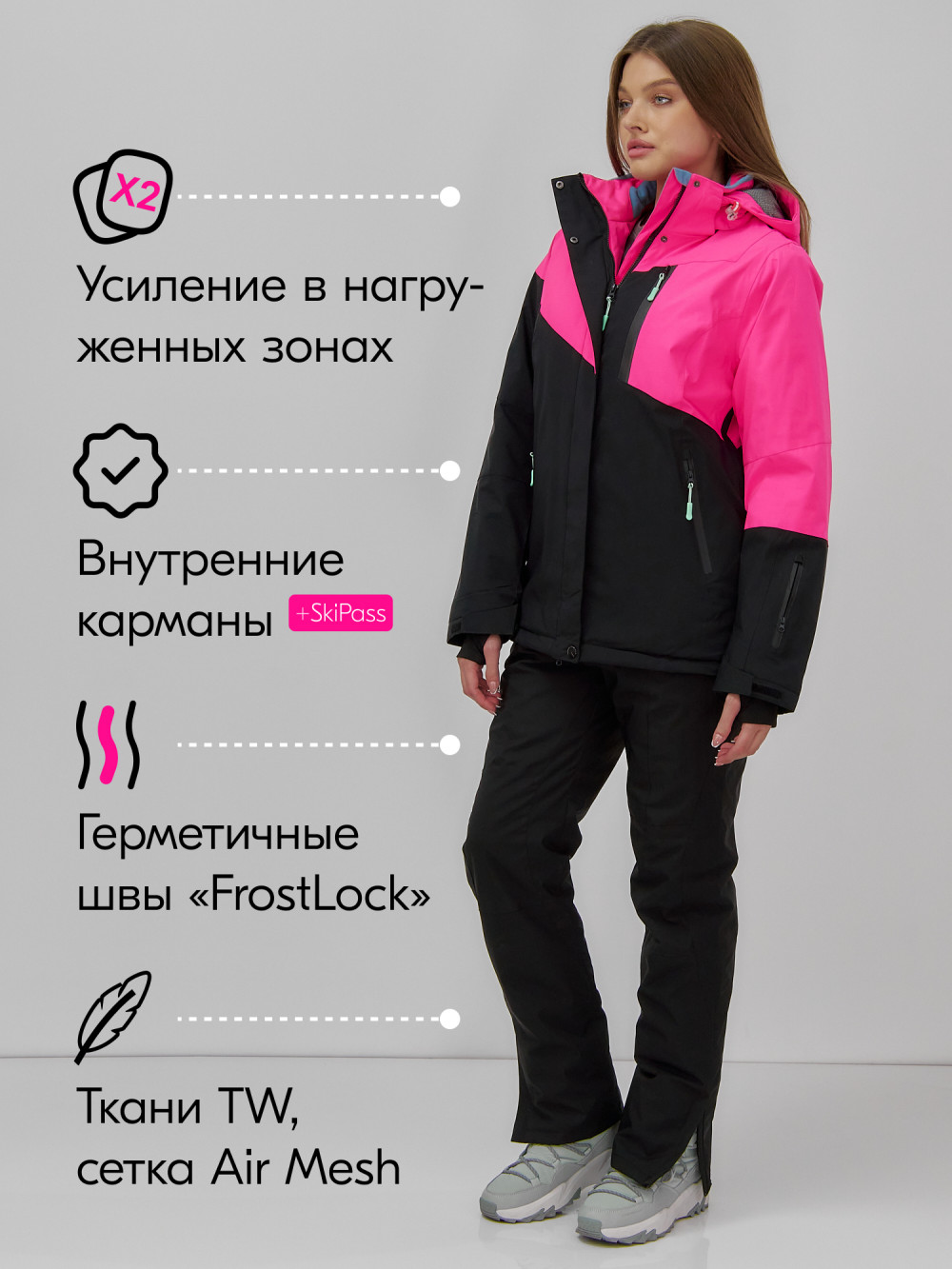 Откройте для себя идеальный союз стиля и функциональности с нашим уникальным горнолыжным костюмом для женщин, включающим в себя изысканную куртку и удобный полукомбинезон. Этот комплект, доступный в размерах от 42 до 50, разработан специально для любительниц зимних видов спорта, которые ценят не только качество, но и элегантность своей экипировки. Куртка костюма поражает своей продуманностью: снимаемый капюшон с регулируемыми утяжками и ушками на кнопках, которые можно без труда зафиксировать в кармашках воротника, надежно защитит вас от ветра и снега. Воротник-стойка и ветрозащитная планка на кнопках обеспечивают дополнительную защиту, в то время как двойная молния и вентиляционные вставки способствуют удобству и комфорту при динамичных движениях. Рукава с эластичными полуперчатками и прорезью для пальца, а также фиксаторы для регулировки длины обеспечивают идеальную посадку и защиту от непогоды. Карман для ски-пасса и снегозащитная юбка на кнопках делают эту куртку незаменимой на склонах. Полукомбинезоны дополняют куртку, предлагая утепленную спинку, регулируемые и съемные бретели для идеальной посадки. Боковые карманы на молнии, шлевки для ремня и утягивающий фиксатор на молнии создают необходимый комфорт и функциональность. Снегозащитные гамаши с антискользящей резинкой и расширитель для обуви обеспечивают надежную защиту и удобство при носке с горнолыжной обувью. Костюм выполнен из высококачественных материалов: подкладка из сетки Air Mesh и полиэстера гарантирует отличную вентиляцию, а внешняя мембранная ткань защищает от влаги, что делает этот костюм идеальным выбором для активного отдыха на горнолыжном курорте.