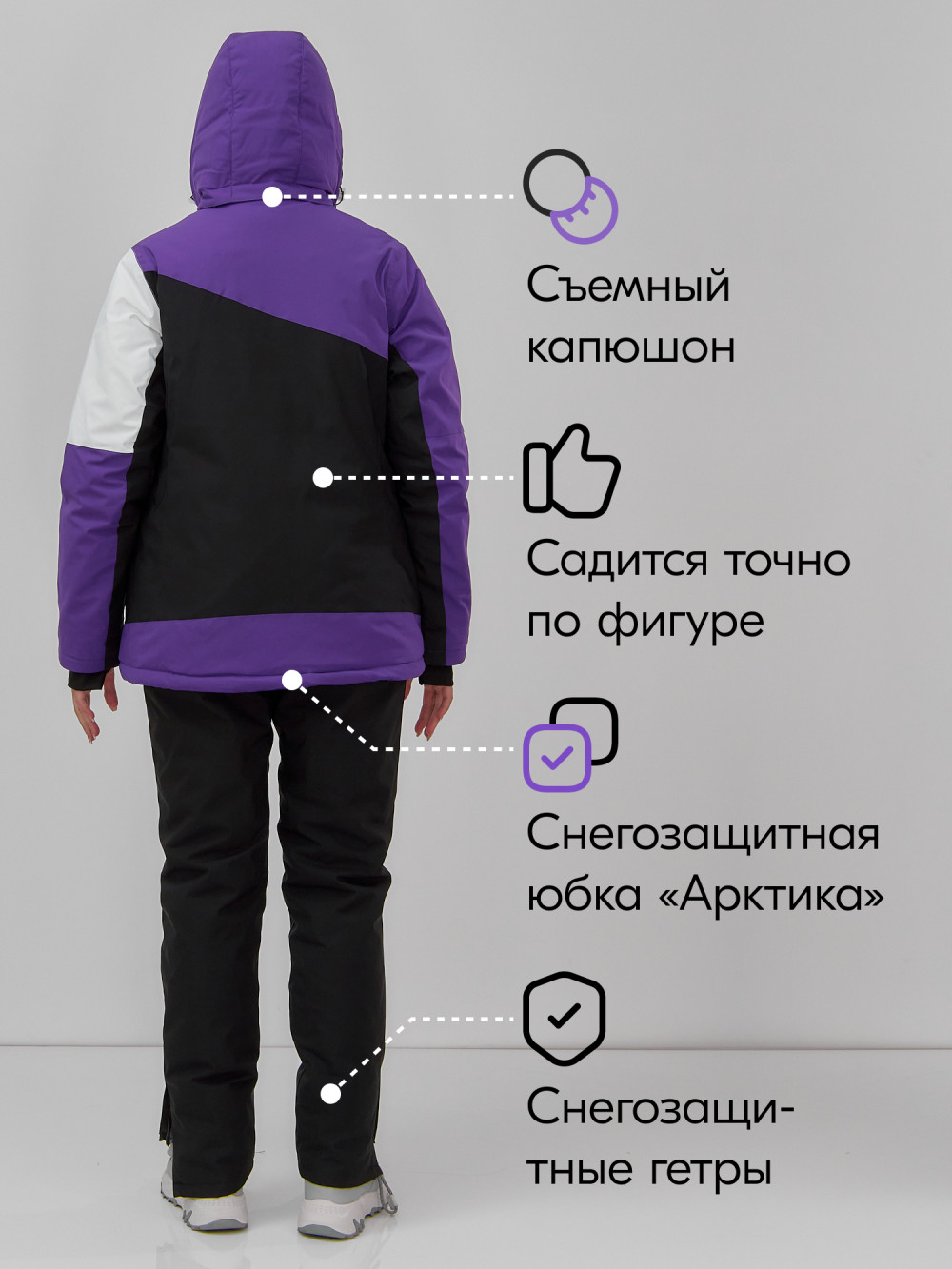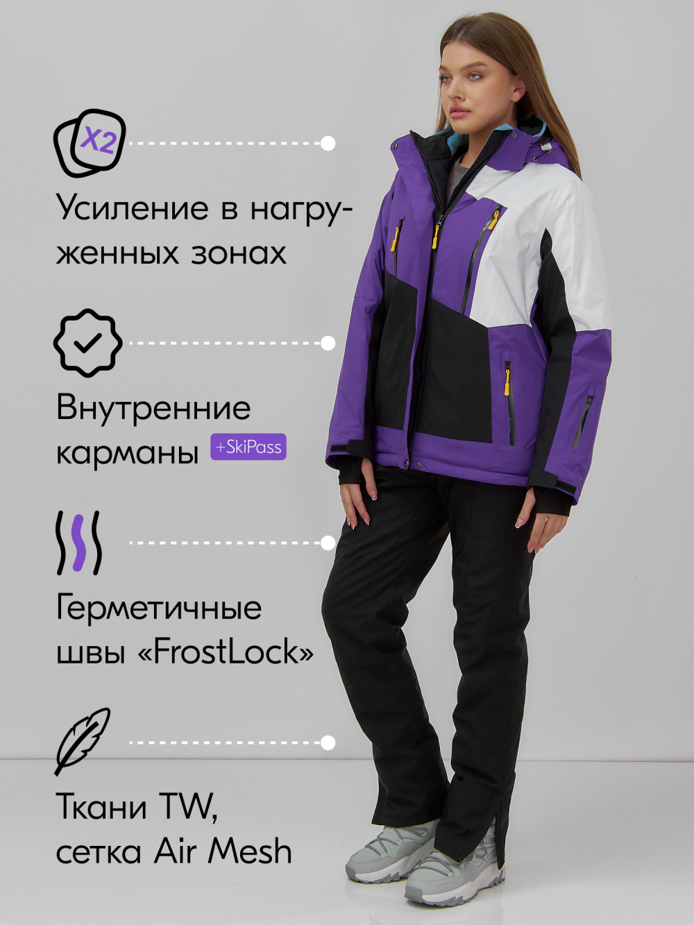 Этот горнолыжный костюм не просто украшение вашего гардероба, это высокотехнологичное решение для любительниц зимних видов спорта, желающих оставаться на вершине моды и функциональности. Выбирая этот костюм, вы выбираете надежный щит от зимней непогоды и великолепное дополнение к вашим приключениям на склонах!