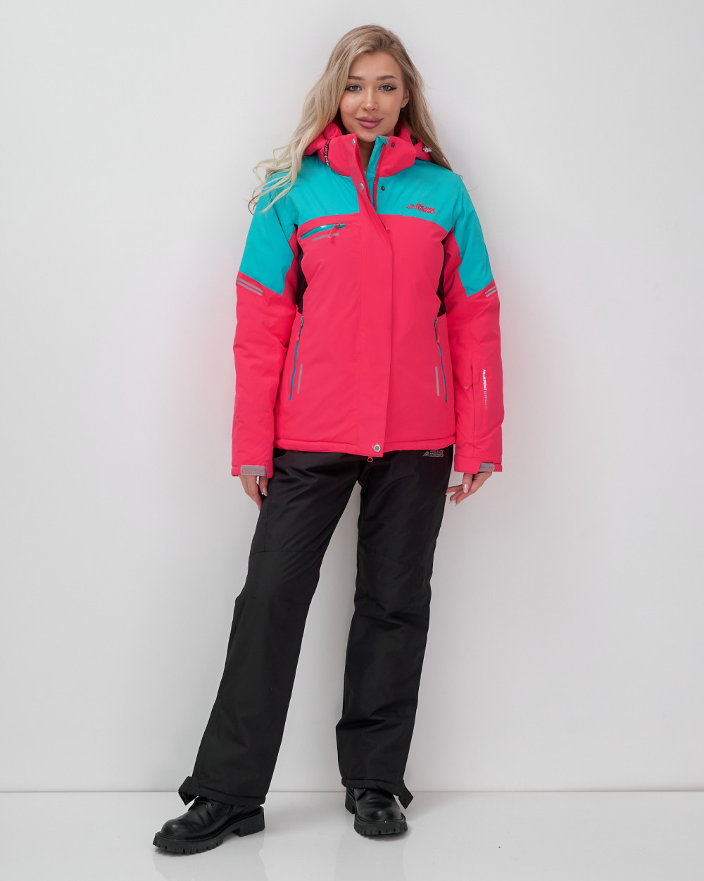 Костюм выполнен в ярких цветах: малиновом, бирюзовом, розовом, темно-синем и фиолетовом, что добавляет динамики вашему образу. Уникальный свободный покрой и съемный капюшон обеспечивают отличную свободу движений, а множество карманов, включая карман для ски-пасса, сделают ваши выходы еще более удобными.