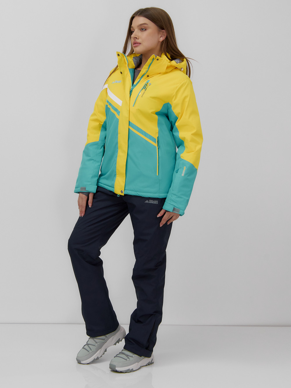 Горнолыжный костюм женский зимний УЦЕНКА желтого цвета 02812J