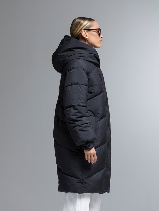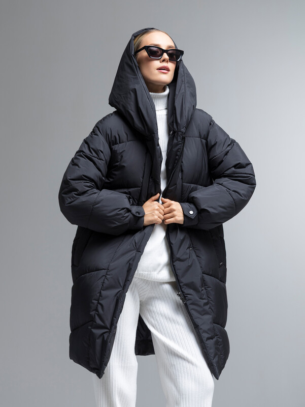 Капюшон, расширенные рукава со складками и декоративной манжетой с отделочной кнопкой придают изделию удобство и стильный силуэт, а так же обеспечивает дополнительную защиту от ветра и холода, и позволяет создавать стильный образ. Пуховик подходит для эксплуатации при температуре до -20°С, благодаря качественному внутреннему пух-пакету с наполнителем из искусственного пуха «ОРСОТЕРМ» плотностью 200 г/м2.