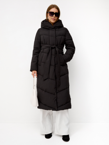 В комплекте идет пояс из основной ткани. Капюшон: не съемный, есть съемная манишка со стойкой.
