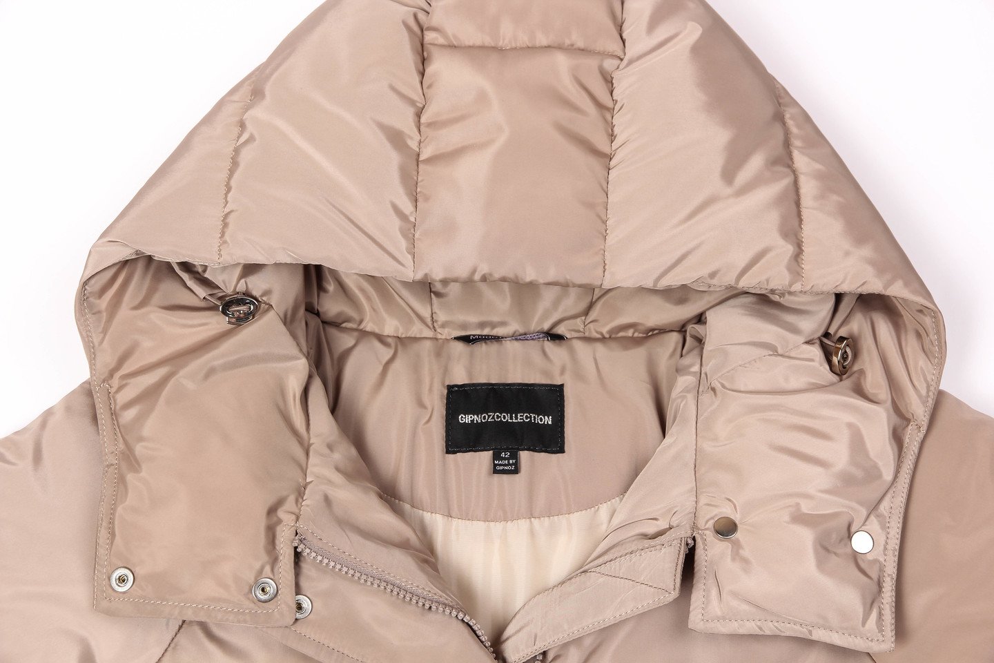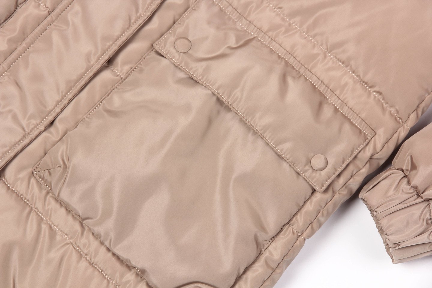 Застежка молния, закрыта планкой на кнопках. Капюшон со стойкой надежно защитит в холодное время года. Ткань плотная. Цветовая гамма очень разнообразная - от нежных оттенков до ярких принтов. Утеплитель синтепух-синтетический пух. На подкладе дополнительный слой, термофин 60. Температурный режим до -25. латте