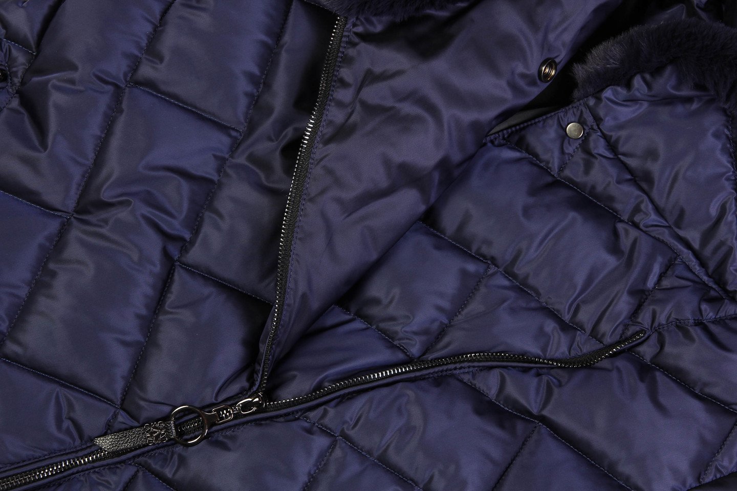 Модель полуприталенного силуэта из гладкого стеганого текстиля поможет создать уютный образ и не даст замерзнуть холодной зимой. Смещенная застежка молния, 2-ая линия бортов придает дополнительное тепло. Прилагается пояс. Очень приятный и нежный искусственный мех около лица придает особую элегантность. Использован новый вид оригинальной строчки. Утеплитель синтепух-синтетический пух. Температурный режим до -25.