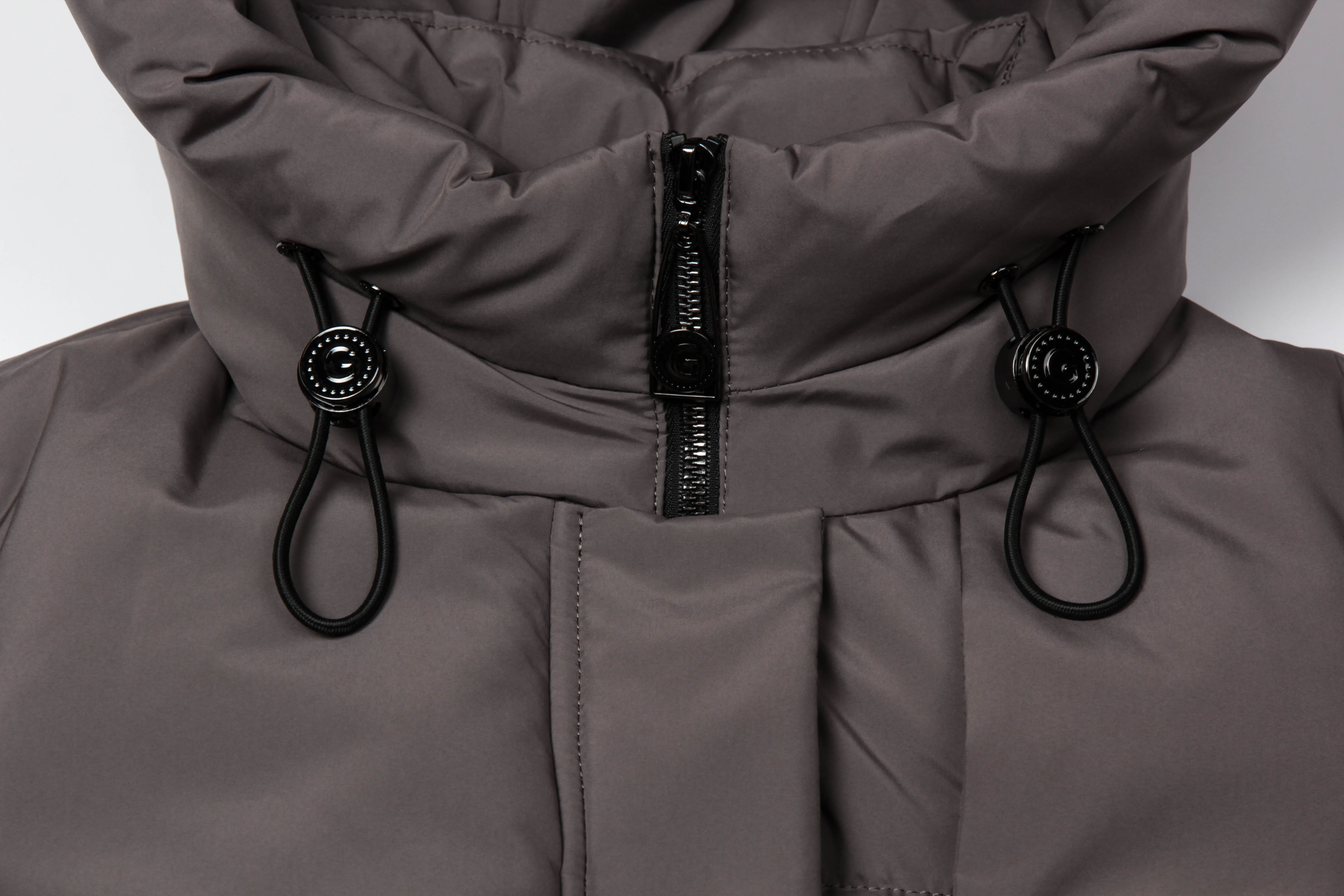 Модное женское пальто зимнее среднего объема, на синтепухе, станет незаменимым элементом гардероба в холодное время года. Выстроченное прямыми строчками, оно создает современный и лаконичный силуэт, подчеркивая чувство стиля своей обладательницы. Асимметричные кокетки на передней части добавляют образу оригинальности и динамики, выделяя пальто среди прочих. Красивые карманы-листочки, украшенные декоративными молниями, не только функциональны, но и служат стильным акцентом, придающим пальто изысканность. Они идеально подходят для хранения мелочей или просто для того, чтобы согреть руки в прохладную погоду. Большой и теплый капюшон с модными фиксаторами и шнурками обеспечивает надежную защиту от ветра и снега, а внутренний воротник- стойка добавляет дополнительный комфорт и тепло. Втачной рукав с трикотажным манжетом плотно прилегает к запястью, предотвращая проникновение холодного воздуха внутрь. Подкладка с дополнительным слоем термофина гарантирует оптимальную теплоизоляцию, позволяя чувствовать себя комфортно даже в самые морозные дни. Это пальто – идеальное сочетание стиля, комфорта и функциональности, созданное для современной женщины, ценящей качество и элегантность в каждой детали. Оно станет вашим надежным спутником в зимние месяцы, подчеркивая вашу индивидуальность и безупречный вкус. Утеплитель синтепух + на подкладе дополнительный слой утеплителя термофин, плотность 60. Температурный режим до -25. /video/1752494550_0.mp4