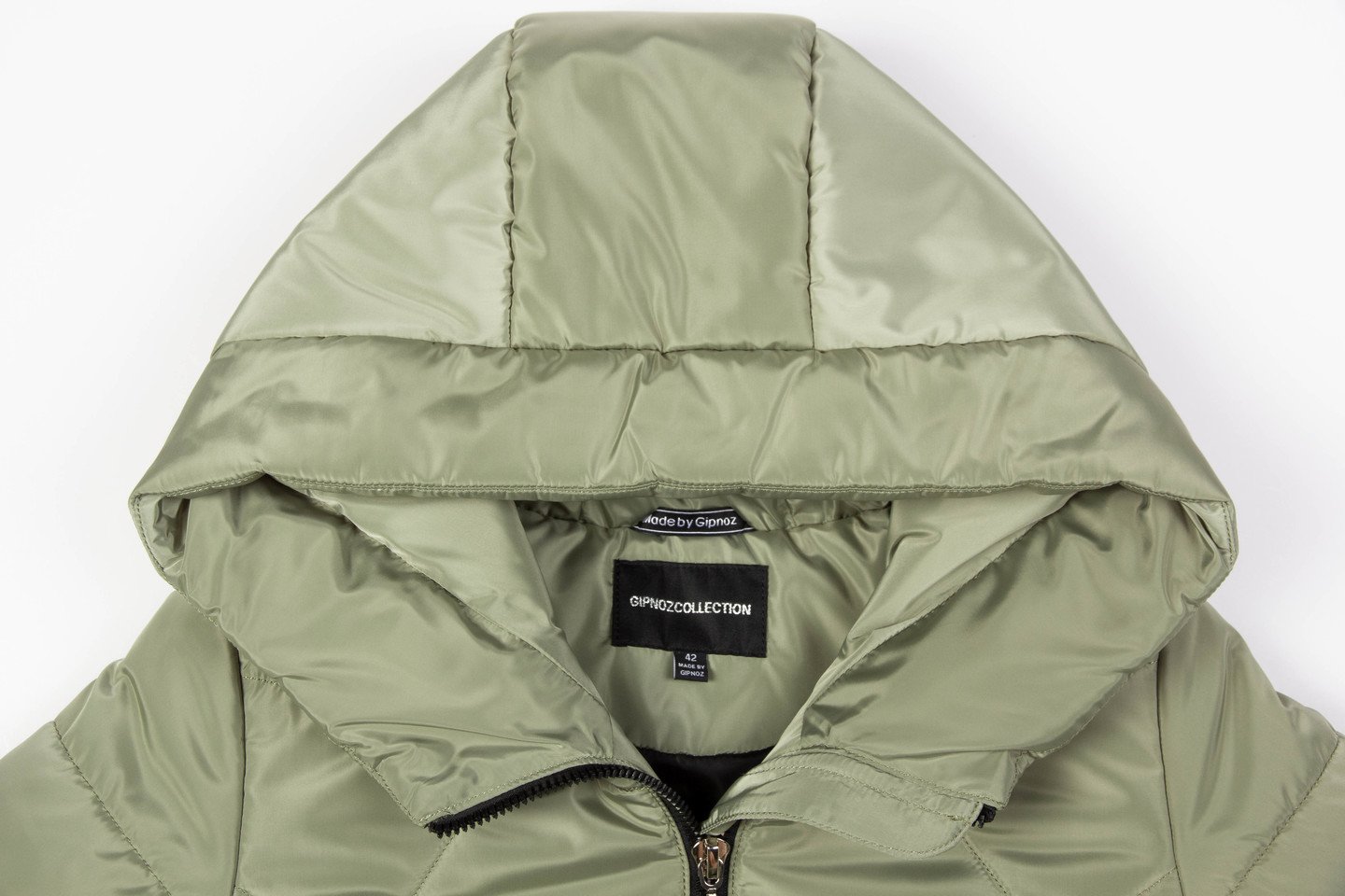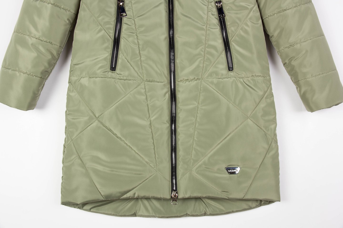 Самыми актуальными в зимний период считаются утепленные пальто с капюшоном. Благодаря удобной длине пальто не стесняет движений, поэтому отлично подходит для повседневной носки. Силуэт прямой, умеренного объема. Оригинальность модели придает фантазийная геометрическая стежка . Центральная застежка и боковые карманы на «молнии». Украшением изделия служат текстильный слайдер и серебристый декор по низу изделия. Низ изделия фигурный. Капюшон - отличная защита от непогоды. Утеплитель термофин, плотность 300. серо-зеленый