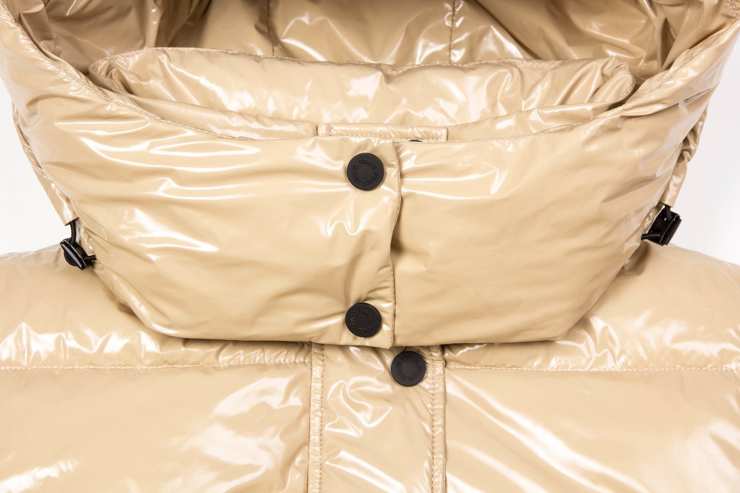 Модный и стильный женский пуховик уже давно стал неотъемлемой частью гардероба на холодное время года. Современные модели женских зимних пуховиков сочетают в себе практичность, качество и соответствие самым актуальным тенденциям. Изделия из лакированной ткани этой зимой действительно будут популярны. Они красивые, яркие и эффектные. К тому же, за счет своего объема и длины в них тебе точно не придется мерзнуть. Высокий воротник-стойка, удобный капюшон с застежкой спереди, застёжка-молния под планкой - особенности данной модели. Планка и карманы застегиваются на кнопки. Утеплитель синтепух-синтетический пух. Температурный режим до -25. бежевый