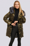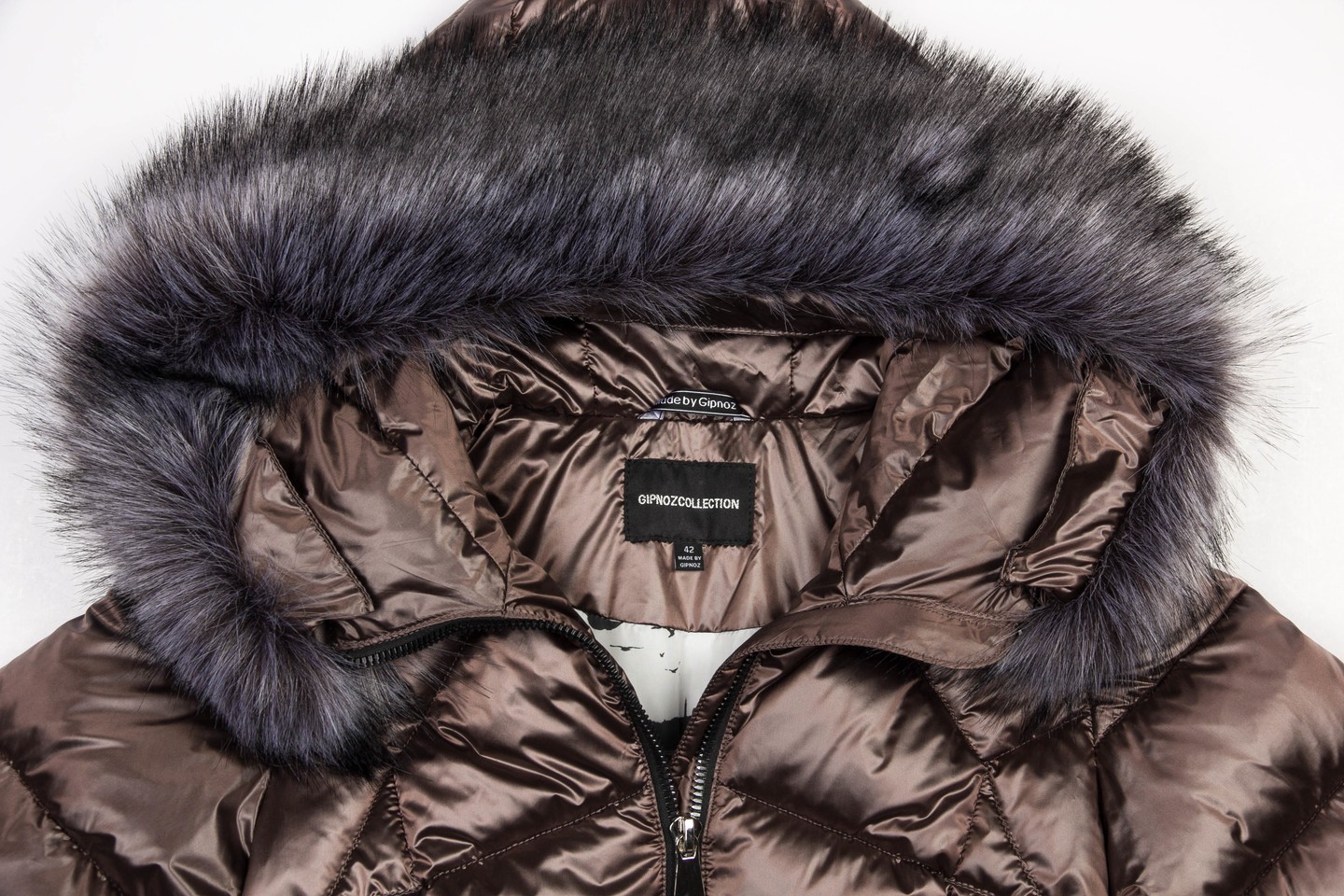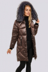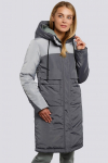 Самыми актуальными в зимний период считаются утепленные пальто с капюшоном. Благодаря удобной длине пальто не стесняет движений, поэтому отлично подходит для повседневной носки. Силуэт прямой, умеренного объема. Оригинальность модели придает фантазийная геометрическая стежка. Центральная застежка и боковые карманы на молниях. Низ рукава на трикотажной манжете. Низ изделия фигурный. Капюшон с отстегивающимся искусственным мехом. Утеплитель синтепух-синтетический пух. Температурный режим до -25. жемчужно-коричневый