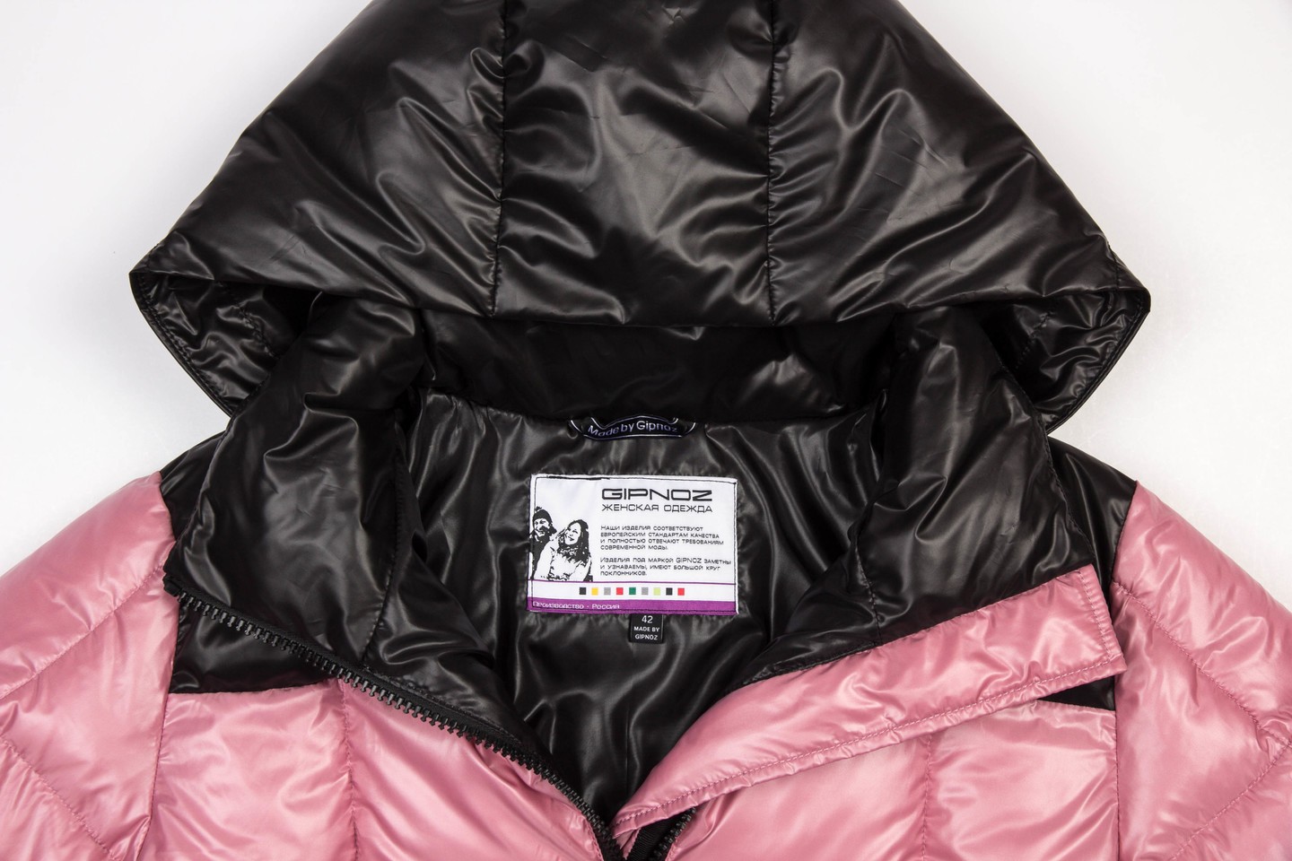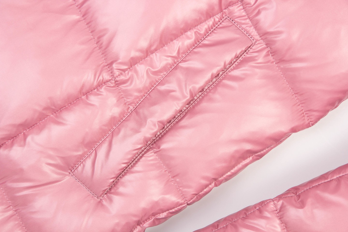 с двойным замком, капюшон отстегивается. Утеплитель синтепух-синтетический пух. Температурный режим до -25. светло-розовый