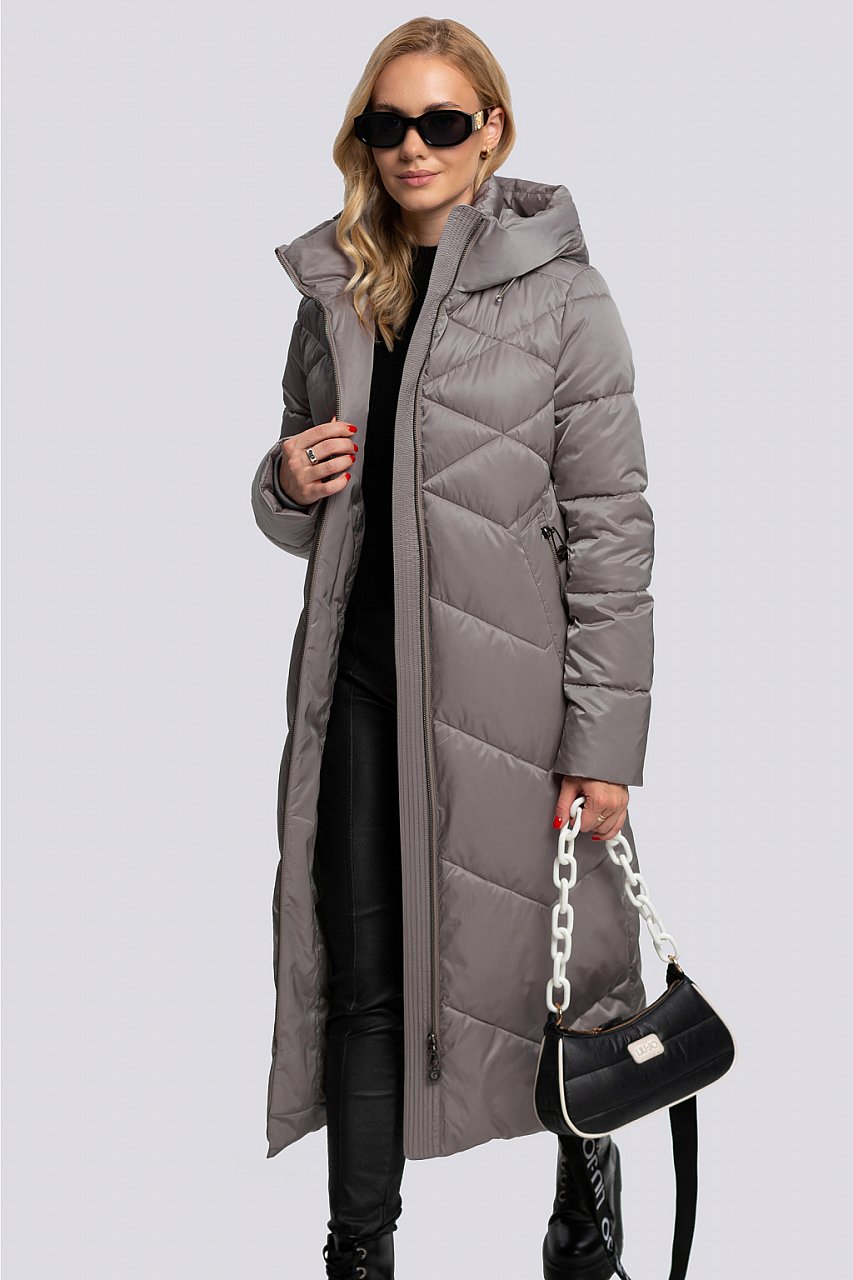 Пуховик, как часть образа, держится на пике популярности уже не первый год. В нем не только теп-ло, но и достаточно комфортно. Бренды все чаще выпускают новинки, которые больше близки к классическому стилю. Их плюс в том, что такие модели можно сочетать абсолютно с любыми ве-щами – юбками, платьями, брюками, а также грубыми ботиками. Так называемая база среди пухо-виков. Наша модель умеренного объема, силуэт – прямой, слегка приталенный. Покрой рукава втачной, низ рукава с трикотажной манжетой. Застежка на молнию. Внутри капюшона воротник-стойка. Изделие достаточно длинное, чтобы согреть в морозную погоду. По боковым швам – разре-зы, застегивающиеся на скрытую молнию, что позволяет регулировать ширину по линии низа. Комбинированные линии стежки, брендовая фурнитура делают модель достаточно оригинальной. Утеплитель синтепух – синтетический пух, дополнительно на подкладке термофин, плотность 60. Температурный режим до -25.