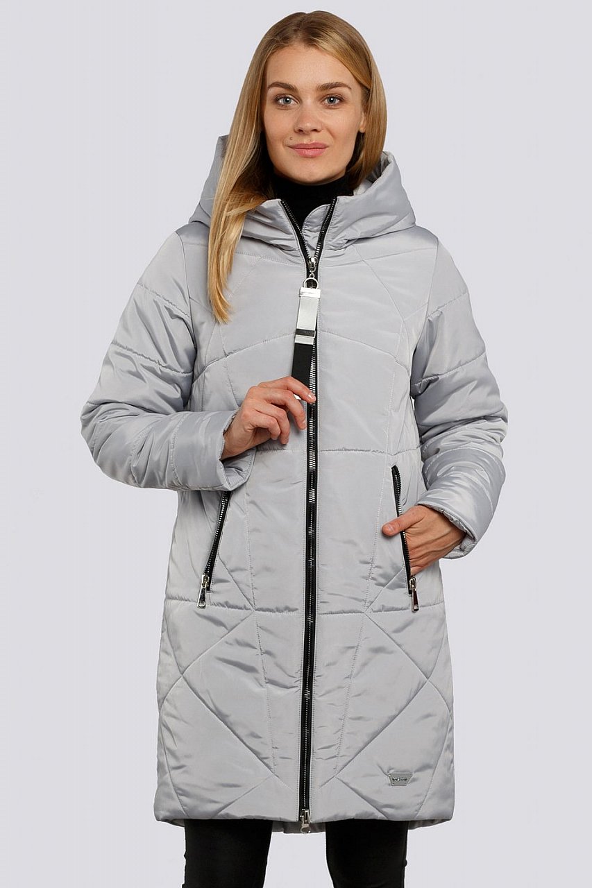 Самыми актуальными в зимний период считаются утепленные пальто с капюшоном. Благодаря удобной длине пальто не стесняет движений, поэтому отлично подходит для повседневной носки. Силуэт прямой, умеренного объема. Оригинальность модели придает фантазийная геометрическая стежка . Центральная застежка и боковые карманы на «молнии». Украшением изделия служат текстильный слайдер и серебристый декор по низу изделия. Низ изделия фигурный. Капюшон - отличная защита от непогоды. Утеплитель термофин, плотность 300.