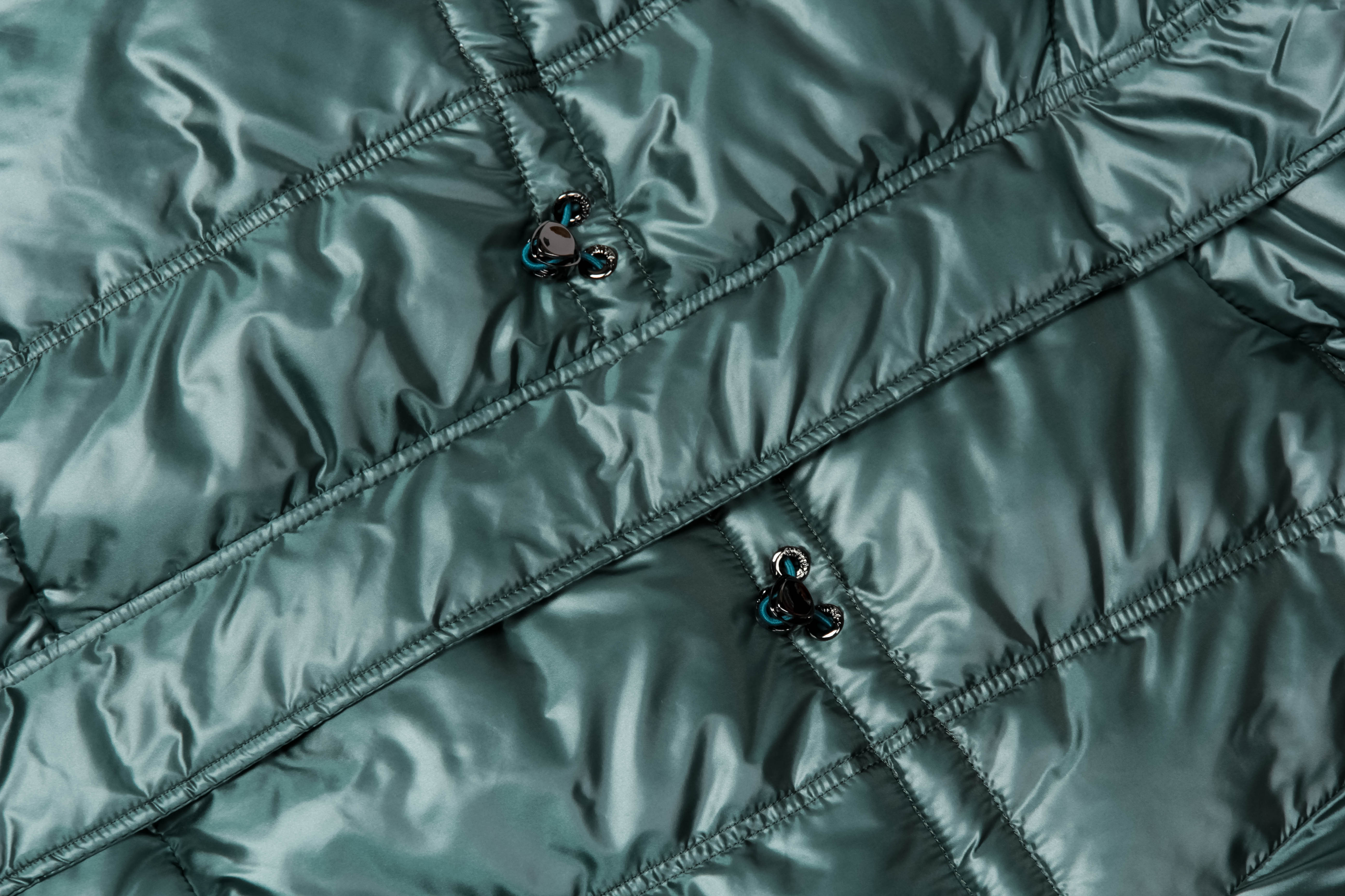 Слегка спущенное плечо и свободный рукав, собранный на резинку по низу, придают пуховику расслабленный и современный вид. Декоративные кулисы с резинками и фиксаторами, расположенные на рукавах, по переду и спинке, позволяют регулировать объем и силуэт, создавая индивидуальный образ.