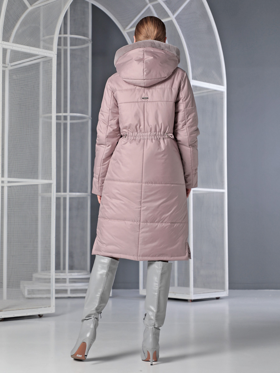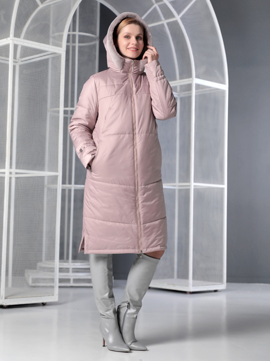Зимнее пальто средней длины прямого силуэта с декоративными разрезами по бокам. Застежка - на двухзамковую молнию, которая позволяет расстегнуть пальто как сверху, так и снизу. Воротник - уютная стойка, переходящая в капюшон. В пальто обработаны две пары удобно расположенных карманов, которые застегиваются на кнопки. Есть и потайной карман на молнии. Низ втачного рукава оформлен трикотажной манжетой, что позволяет удерживать тепло внутри изделия. Прямой силуэт можно скорректировать затяжкой на талии, увеличив тем самым прилегание по спинке. Такое модное пальто подходит для девушек и женщин разной возрастной категории, оно хорошо садится на любую фигуру. Опушка из приятного на ощупь искусственного меха добавляет привлекательности и элегантности. Мех не отстегивается, но хорошо стирается и не теряет свой красивый внешний вид после высыхания. Плащевая ткань, из которой выполнено изделие, имеет водоотталкивающую пропитку, выдерживающую небольшой дождь, снег и ветер.
