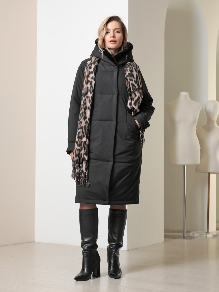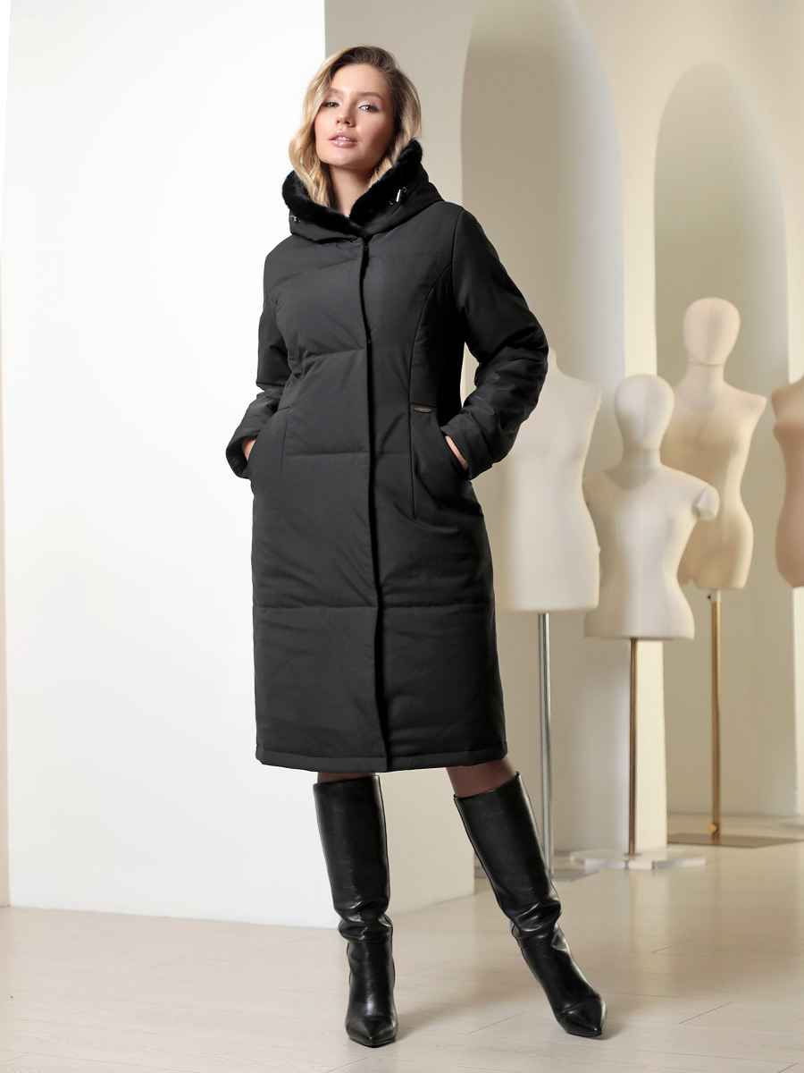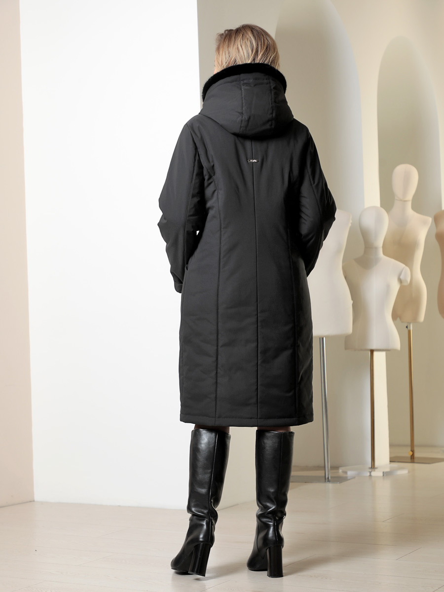 Стильное зимнее пальто средней длины полуприлегающего силуэта подходит для девушек и женщин разной возрастной категории, оно хорошо садится на любую фигуру. Отворот несъемного капюшона оформлен опушкой из приятного на ощупь искусственного меха, что добавляет элегантности образу. Мех не отстегивается, но хорошо стирается и не теряет свой красивый внешний вид после высыхания. Смещенная застежка в пальто двойная - на молнию и кнопки. Длину втачного рукава можно регулировать отворотом. Карманы в этой женственной модели пальто выполнены по типу накладных и предназначены для "мелочей". Есть внутренний кармашек на молнии. Плащевая ткань имеет водоотталкивающую пропитку, выдерживающую небольшой дождь, снег и ветер. Хорошо зарекомендовавший себя утеплитель " Холлофайбер", плотностью 300гр/м, защитит от холода. Подкладка в изделии - из ткани в мелкую полоску. Выбирайте понравившийся цвет, подбирайте аксессуары, и Ваша зима будет уютной, стильной и комфортной!