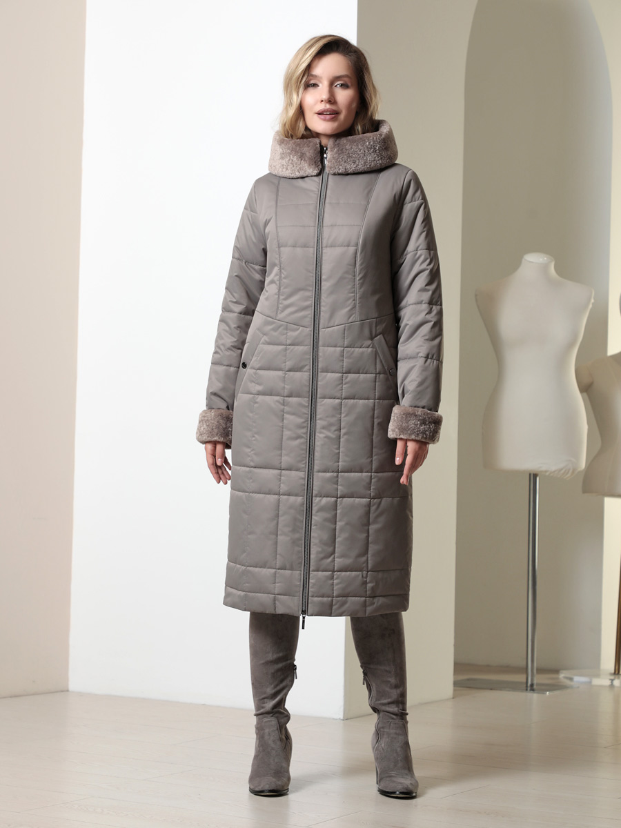 Длинное зимнее пальто полуприлегающего силуэта подходит для девушек и женщин разной возрастной категории. Декоративные строчки красиво подчеркивают и выгодно "вытягивают" силуэт. Застежка - на двухзамковую молнию, которая позволяет регулировать ширину шага при необходимости; есть внутренняя ветрозащитная планка. Отворот втачного рукава и отворот несъемного капюшона выполнены из приятного на ощупь искусственного меха; опушка не отстегивается, но очень хорошо стирается и сохраняет свой красивый внешний вид после высыхания! Удобно расположенные карманы застегиваются на кнопки. Имеется нагрудный потайной карман на молнии. Плащевая ткань, из которой выполнено изделие, имеет водоотталкивающую пропитку, выдерживающую небольшой дождь, снег и ветер. Хорошо зарекомендовавший себя утеплитель "Холлофайбер", плотностью 300гр/м, защитит от холода. Подкладка в изделии выполнена из ткани в мелкую полоску. Выбирайте понравившийся цвет, меняйте аксессуары и обувь, и это элегантное пальто станет любимой вещью в Вашем гардеробе!