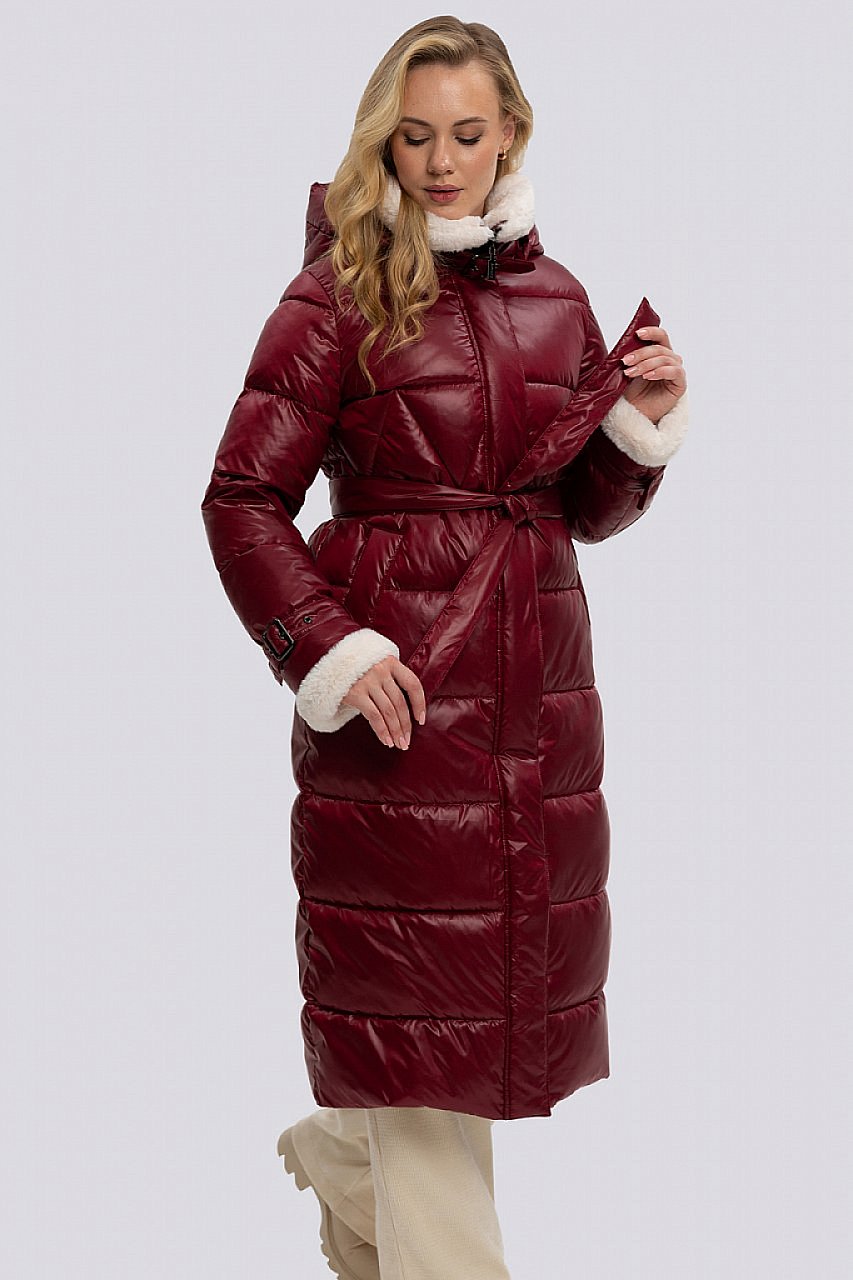 Женское теплое стеганое пальто – незаменимая вещь в зимнем гардеробе. Оно сочетает в себе элегантность и функциональность, обеспечивая комфорт даже в самые суровые морозы. Комфортная длина и прямой силуэт изделия позволяют чувствовать себя свободно и уверенно, не сковывая движений. Втачной покрой рукава добавляет пальто изысканности и подчеркивает женственность образа. Особое внимание привлекают детали: нежнейший мех контрастного молочного цвета на воротнике и манжетах придает пальто неповторимый шарм и создает ощущение уюта. Рукав с возможностью отворота на манжет позволяет регулировать длину и добавлять образу индивидуальности. Застежка-молния, скрытая под планкой, надежно защищает от ветра и холода, а воротник- стойка, застегивающийся на пряжку, обеспечивает дополнительную защиту шеи. Модель дополнена поясом, который позволяет подчеркнуть талию и создать более женственный силуэт. Практичным дополнением является отстегивающийся капюшон, который пригодится в снежную или дождливую погоду. Утеплитель – синтетический пух, дополненный синтепоном плотностью 60 на подкладке, гарантирует надежную защиту от холода. Температурный режим до -25 градусов позволяет комфортно чувствовать себя даже в самые морозные дни. Это пальто станет вашим верным спутником зимой, согревая и радуя своим стильным внешним видом. винный