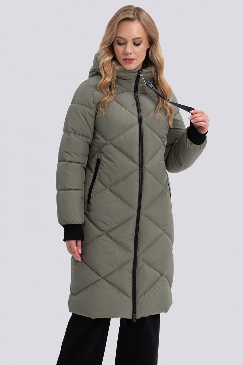 Зимний пуховик для женщин – это идеальное сочетание тепла, комфорта и стиля для холодных дней. Изготовленный на синтепухе с дополнительным слоем термофина, он обеспечивает надежную защиту от мороза, сохраняя при этом легкость и свободу движений. Подкладка из мягкого, приятного к телу материала добавляет комфорта при ношении. Этот пуховик среднего объема имеет классический силуэт, который хорошо сочетается с различными стилями одежды. Втачной рукав обеспечивает удобную посадку по плечам и свободу движений. Трикотажная манжета черного цвета по низу рукава плотно прилегает к запястью, предотвращая проникновение холодного воздуха. Застежка-молния по переду пуховика обеспечивает удобство и быстроту надевания и снятия. Карманы на молнии позволяют безопасно хранить необходимые мелочи, такие как телефон, ключи или перчатки. Уютный капюшон защитит от ветра и снега, а также добавит образу завершенности. Декоративные строчки в виде ромбов придают пуховику оригинальный и стильный вид, делая его не просто функциональной вещью, но и модным элементом гардероба. Этот пуховик станет незаменимым спутником в зимние месяцы, обеспечивая тепло и комфорт даже в самую суровую погоду. Утеплитель синтепух, плотность 250 г/м + термофин 60г/м. серый хаки
