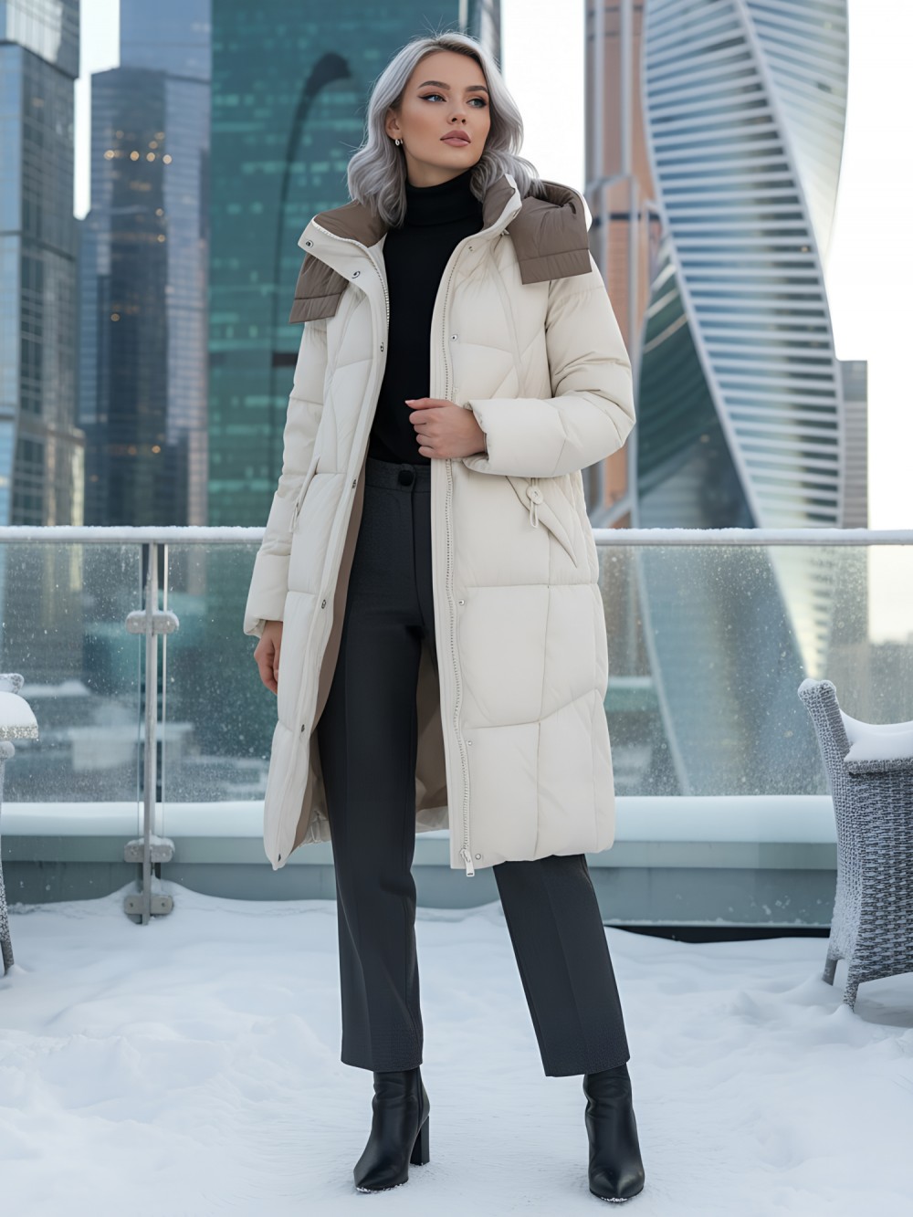 Позвольте представить вам зимнее утепленное пальто с капюшоном, которое станет вашим идеальным спутником в холодное время года! Эта модель, представляемая в размерах от 46 до 54, создана для женщин, которые ценят стиль и комфорт. Пальто не только защитит вас от зимнего холода, но и подчеркнет вашу индивидуальность.
