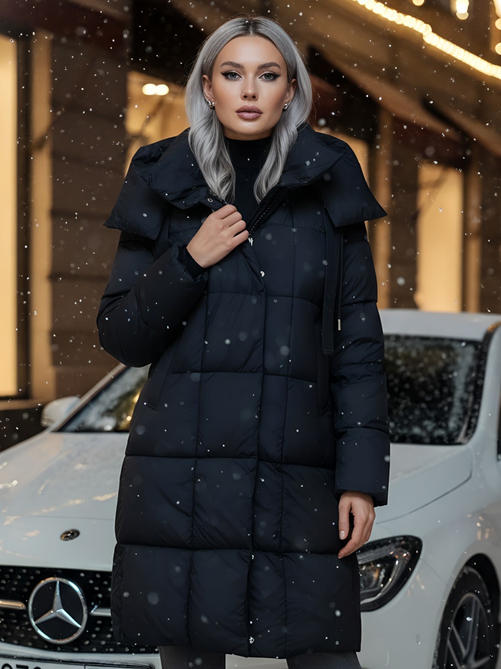 Элегантный широкий воротник на магните и удлиненная длина до колена создают утонченный силуэт, который подходит как для офисных будней, так и для повседневных выходов. Съемный капюшон и внутренние карманы добавляют функциональности, а двойная молния, кнопки и магнитная застежка подчеркивают современный стиль.