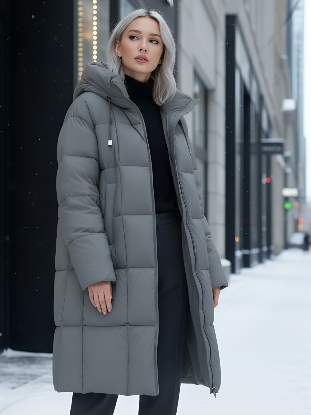 Элегантный и свободный покрой ниже колена создает стильный силуэт, а удлиненная длина и прямой фасон добавляют нотку изысканности. Капюшон с фиксатором и манжеты обеспечивают дополнительную защиту от холода и ветра, а удобные внутренние карманы с магнитными застежками станут идеальным местом для хранения мелочей.