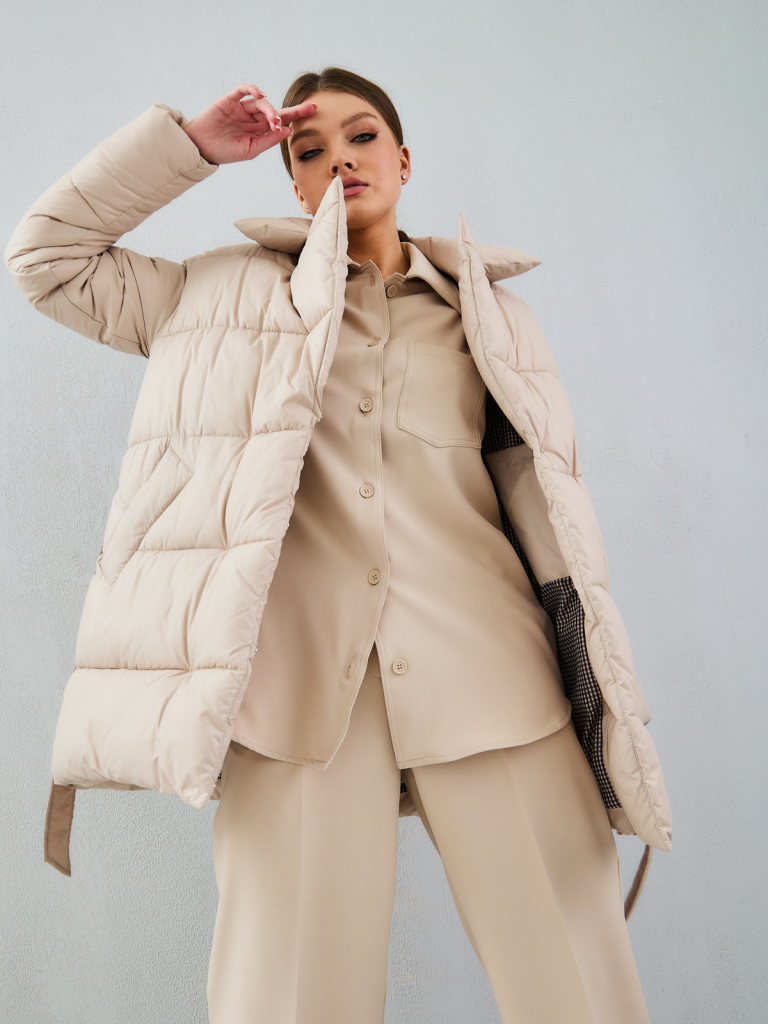 Уютный длинный пуховик с интересным капюшоном. Два функциональных кармана в шве изделия. Манжеты трикотажные в цвет изделия. Есть внутренний карман. Ткань верха- Js-30. Утепление- биопух. Температурный режим (от -15°C до -30°C) Длина рукавов 64 см. Длина изделия 115 см. Выполнена в цветах: светло-бежевый, фисташка, агатово-серый, хаки, черный. Размеры: 42-56.