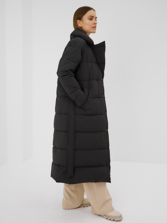 Модный женский двубортный пуховик прямого силуэта со съемным капюшоном-манишкой. Горловина изделия оформлена воротником с лацканами. Застежка на кнопках, без молнии. Есть два кармана с листочками на магнитах, а также внутренний карман. В комплекте с изделием идет пояс из основного материала. Ткань - плащевая с водоотталкивающей пропиткой. Утепление – биопух, 250 гр. Рекомендуемый температурный режим (от -0°C до -20°C). Длина изделия - 122 см. Длина рукава - 65 см. Размеры: 42-56.