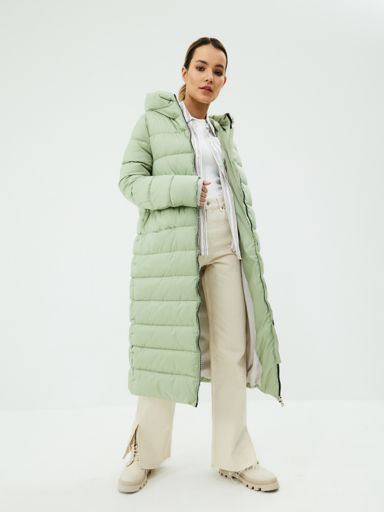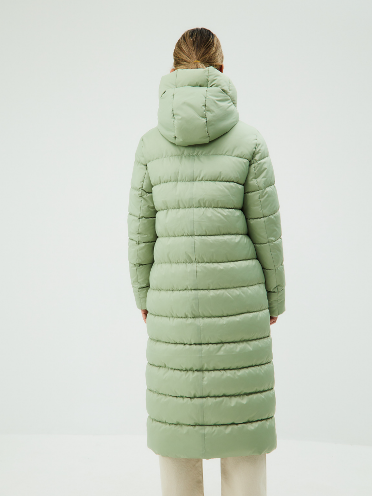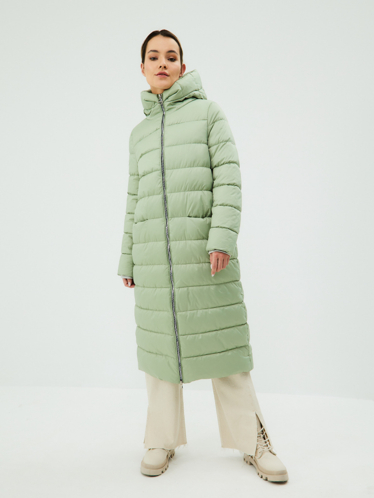 Стильный пуховик в стиле casual. Прямой силуэт, капюшон втачной, два кармана в шве на потайных кнопках, центральная застежка - молния под металл. Рукав втачного покроя. В изделии имеется внутренний карман. Ткань с водоотталкивающей пропиткой. Утепление: Био-пух 350 гр. Рекомендуемый температурный режим (от -25°C до -10°C). Длина изделия -110 см. Длина рукава - 64 см. Размеры: 42-56.