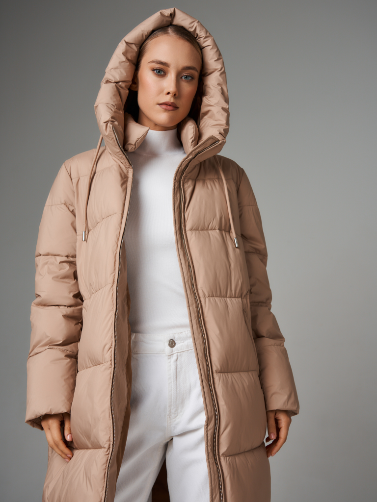 Длина изделия по спинке: 100 см Длина рукава: 65 см Плотность утеплителя: 280 г/м2 Температурный режим: от - 5°C до -20°C Покрой: прямой Тип рукава: втачной Тип карманов: прорезные на молнии. Состав: 100% полиэстер Материал подкладки: 100% полиэстр Ткань: с водоотталкивающей пропиткой. Размеры: 42-52 Детали: капюшон втачной, застежка на молнию.