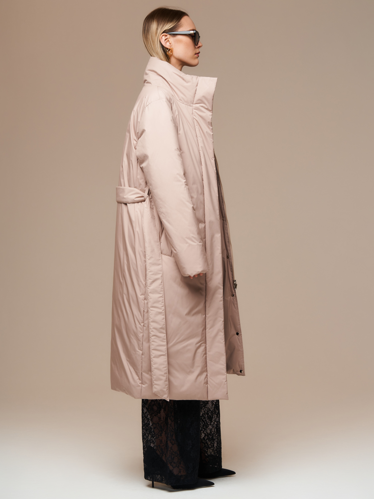 Детали: застежка на молнию и потайные кнопки, пояс из основной ткани