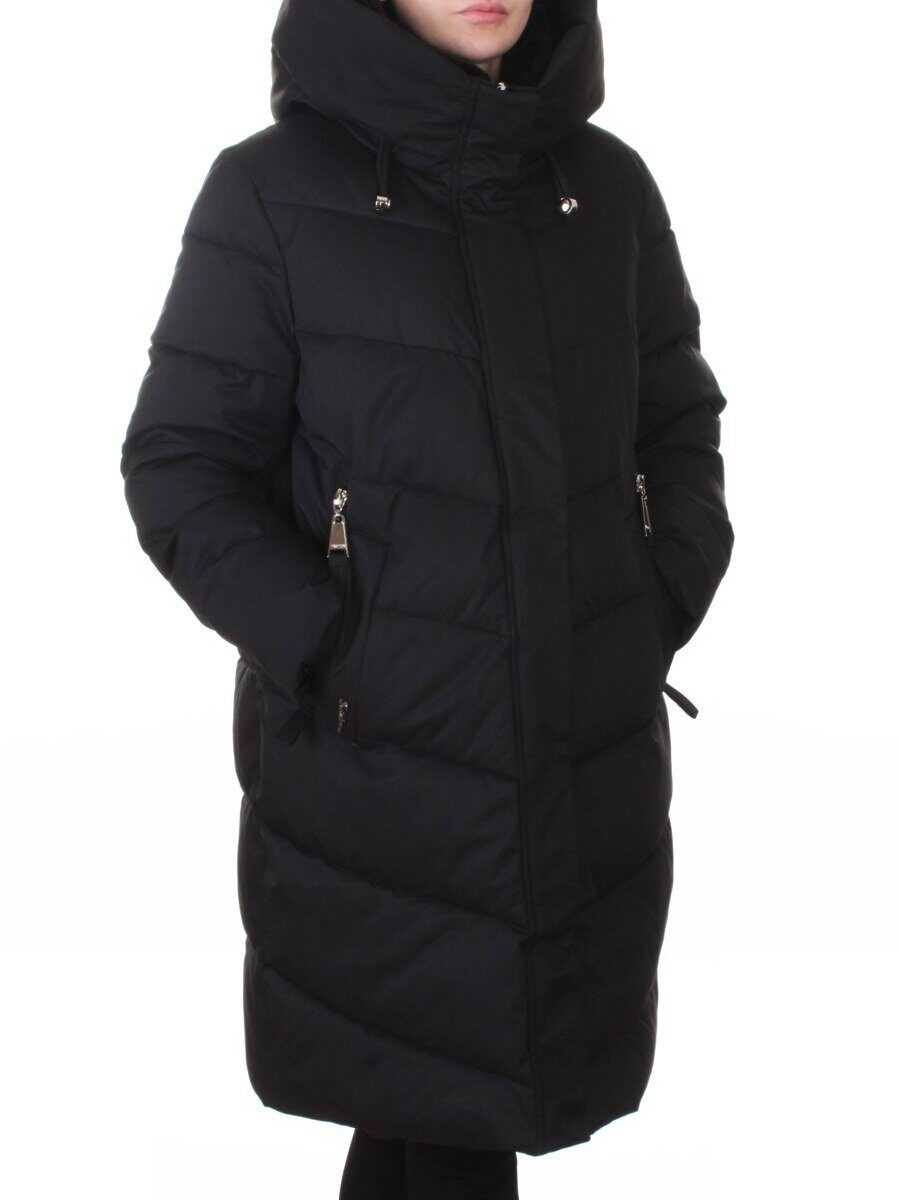 6605B BLACK Пальто зимнее женское (200 гр. холлофайбер)