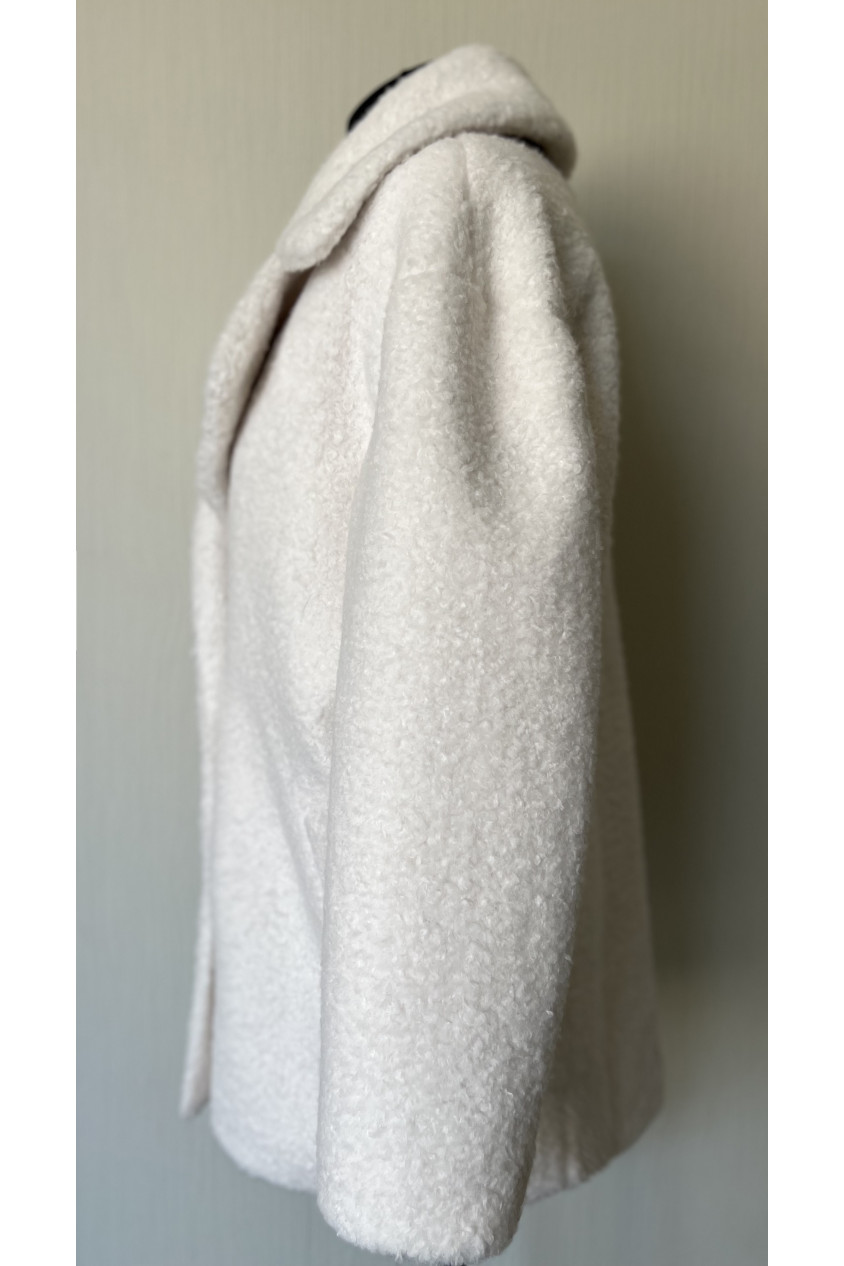 Укороченная модель фиксируется на кнопки, а рукав реглан придает исключительную мягкость изделию и делает линию плеч закругленной.