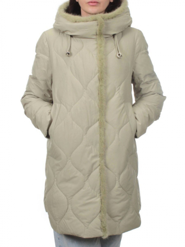 309 GRAY/GREEN Пальто зимнее стеганое женское (200 гр. холлофайбер, натуральная норка)
