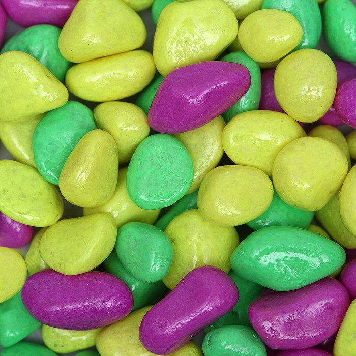 Галька, которая светится настроением — яркая днём и выразительная под подсветкой. Флуоресцентная декоративная галька фракции 5–10 мм представлена в сочных оттенках: лимонный, зелёный и пурпурный. Декоративный грунт изготовлен из природного сырья, не токсичен, безопасен для человека и окружающей среды.