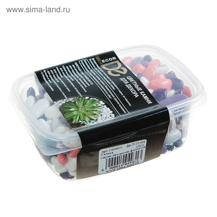 Галька для аквариума DECOR DE, фр. 5-10 мм, сиреневая/белая/розовая/фиолетовая, 350 г