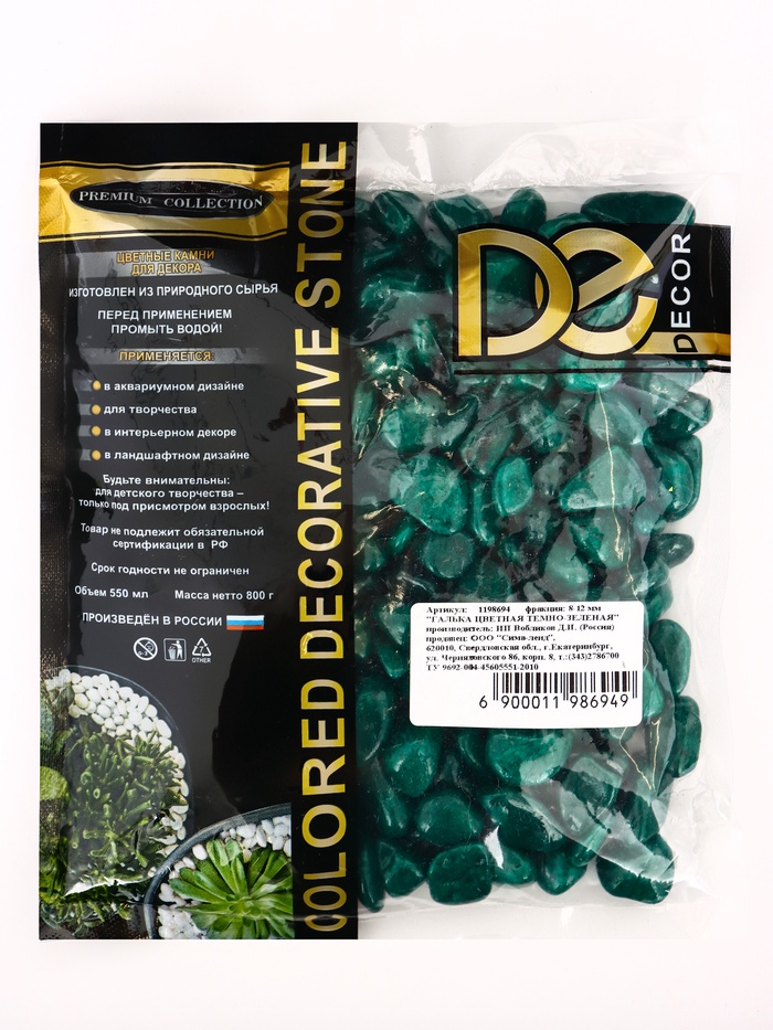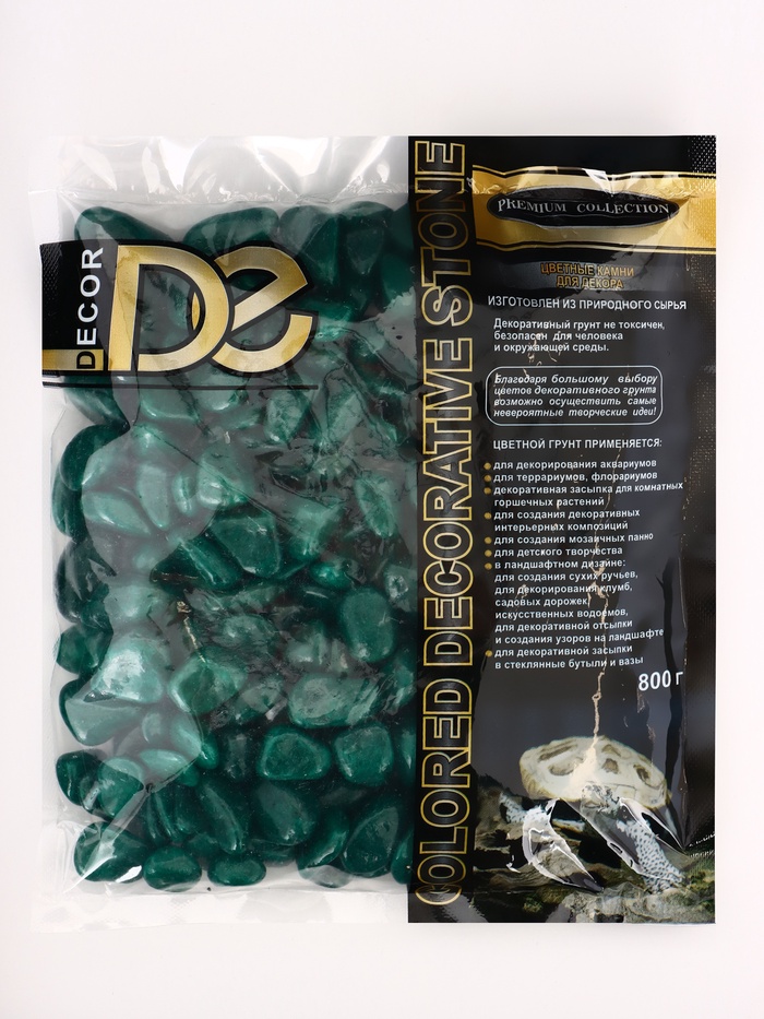 Грунт для аквариума DECOR DE «Галька цветная», фр. 8-12 мм, темно-зелёная, 800 г