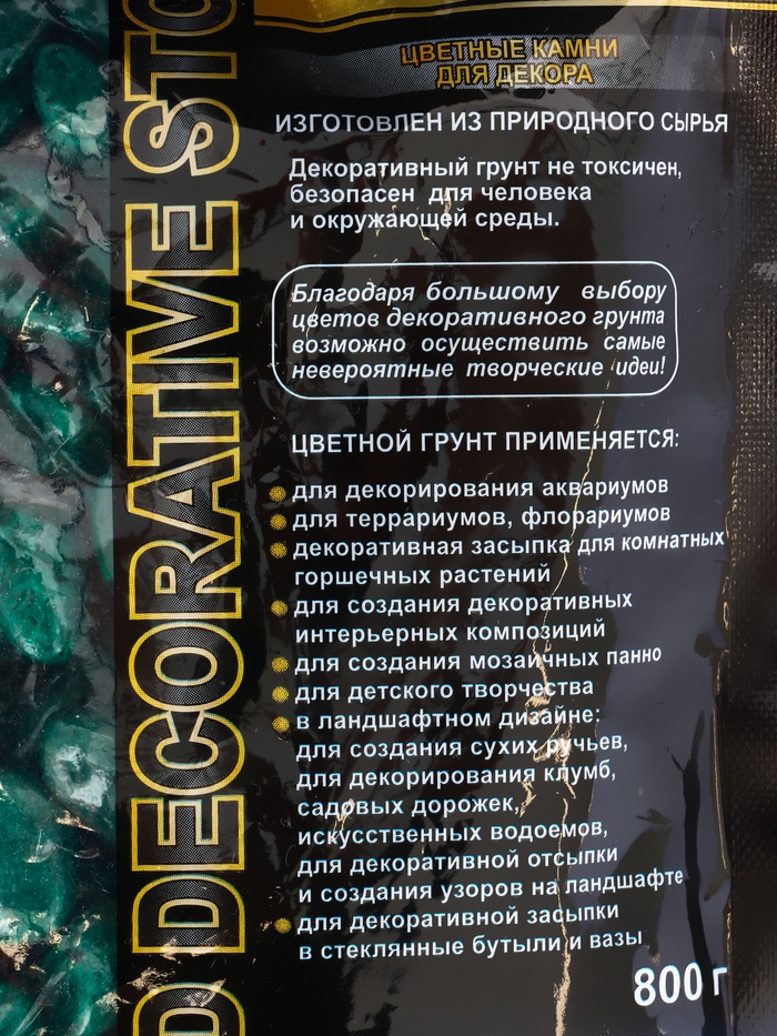 * Объём 800 г: достаточно для оформления дна аквариума, или создания нескольких крупных декоративных композиций.