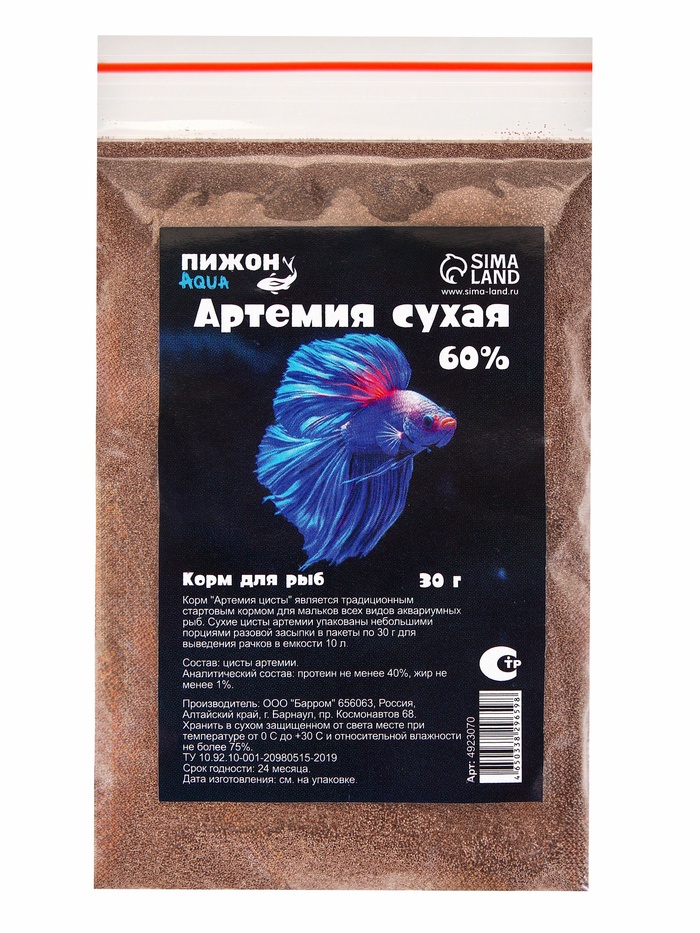 Корм для рыб «Пижон» артемия сухая 60 %, 30 г