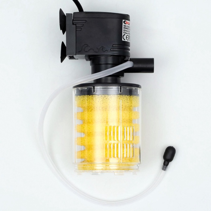 Фильтр крепится на присоски, позволяет легко установить его в аквариуме.