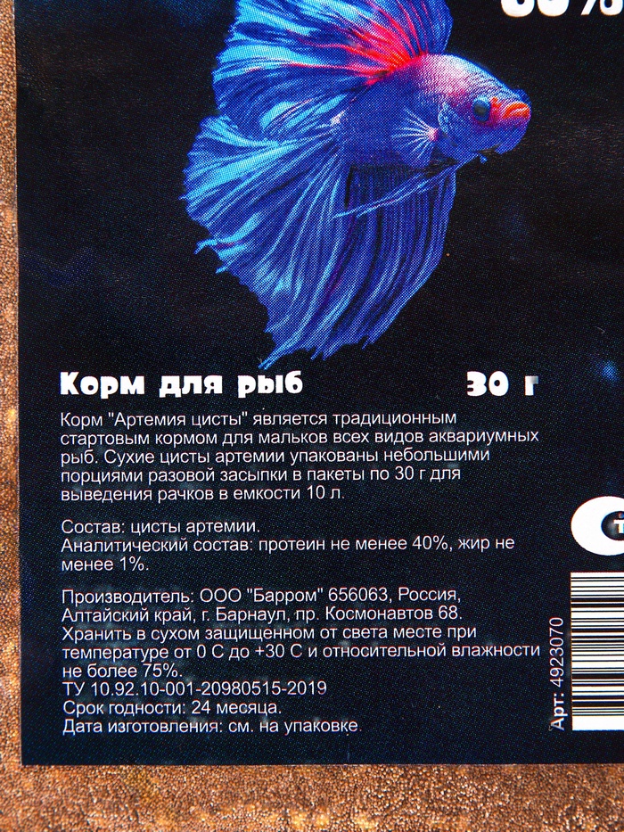 Корм для рыб "Пижон" артемия сухая 60 %, 30 г